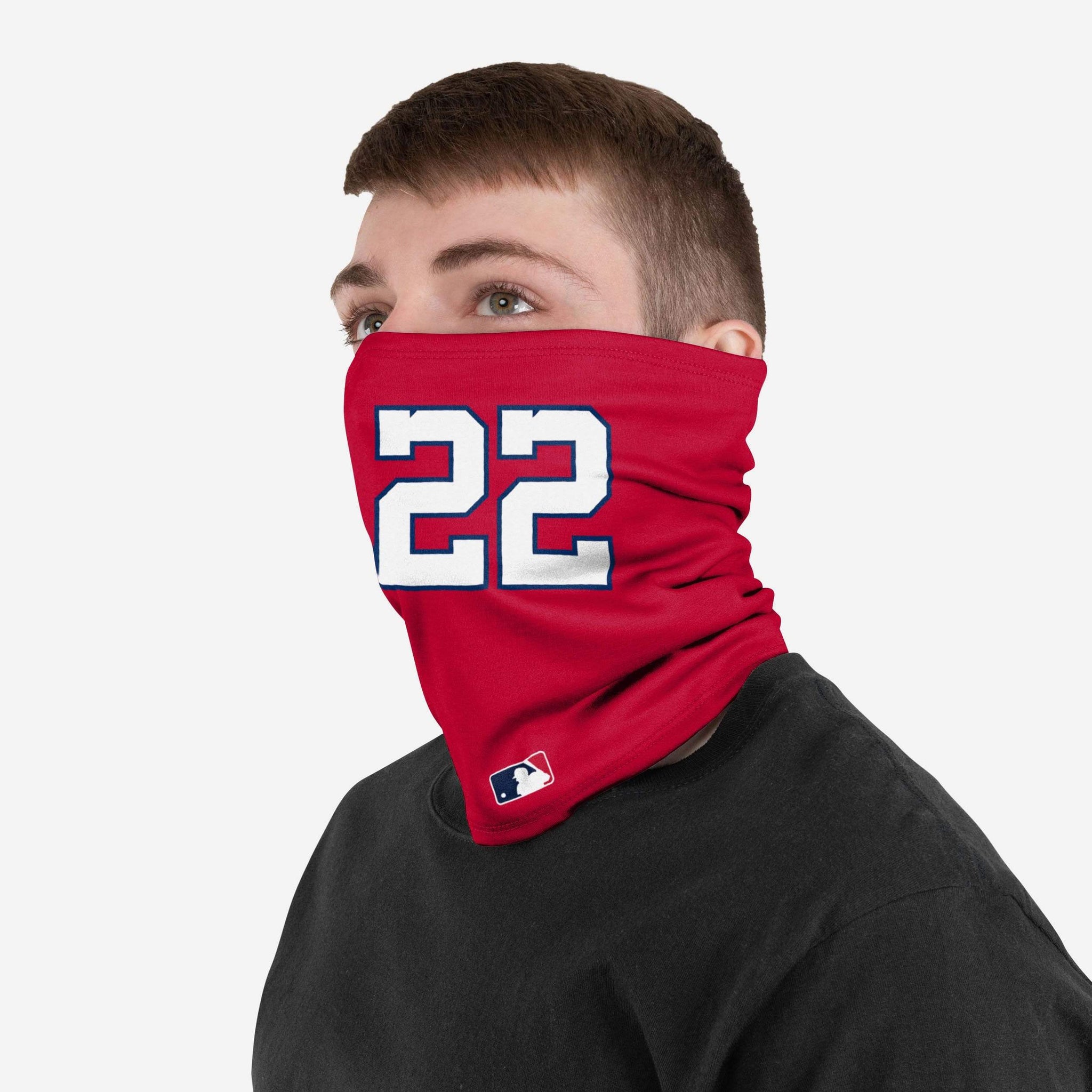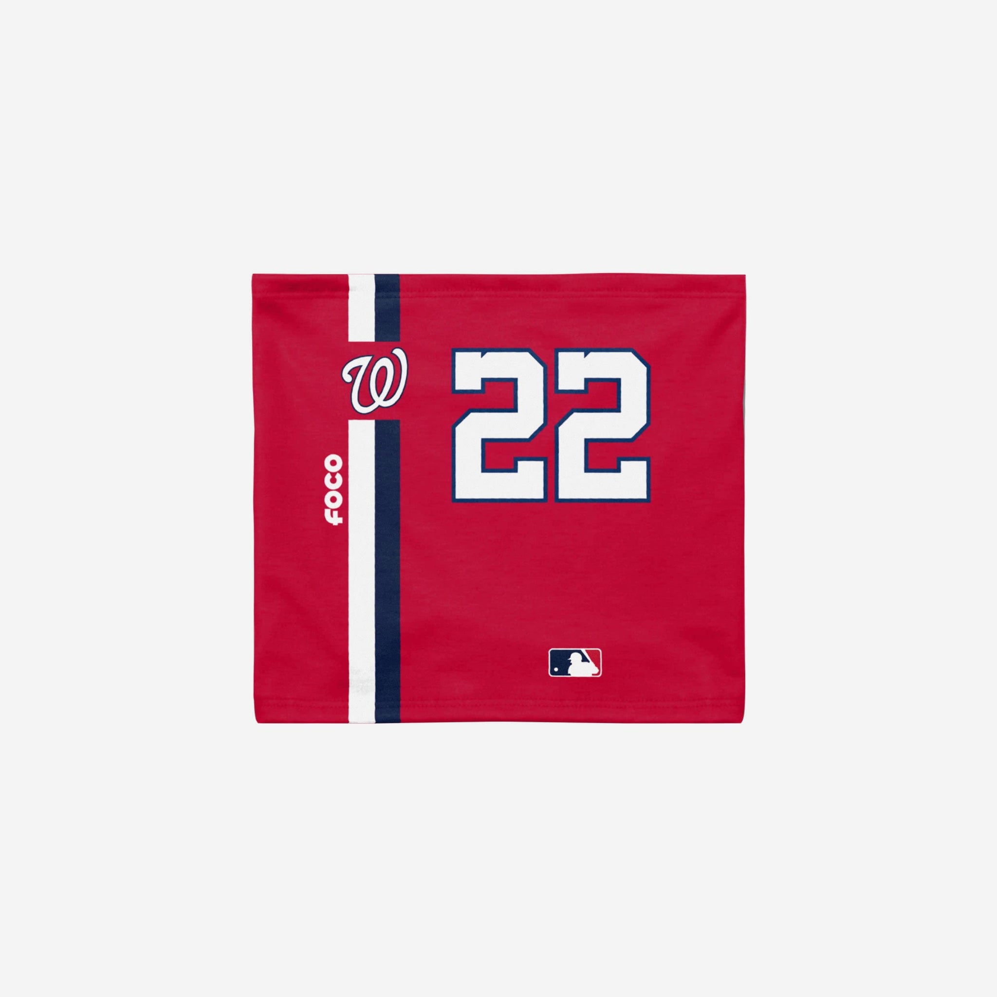 From the field to your face! Cover up with the authentic style of this Juan Soto Washington Nationals On-Field Red UV Gaiter Scarf!