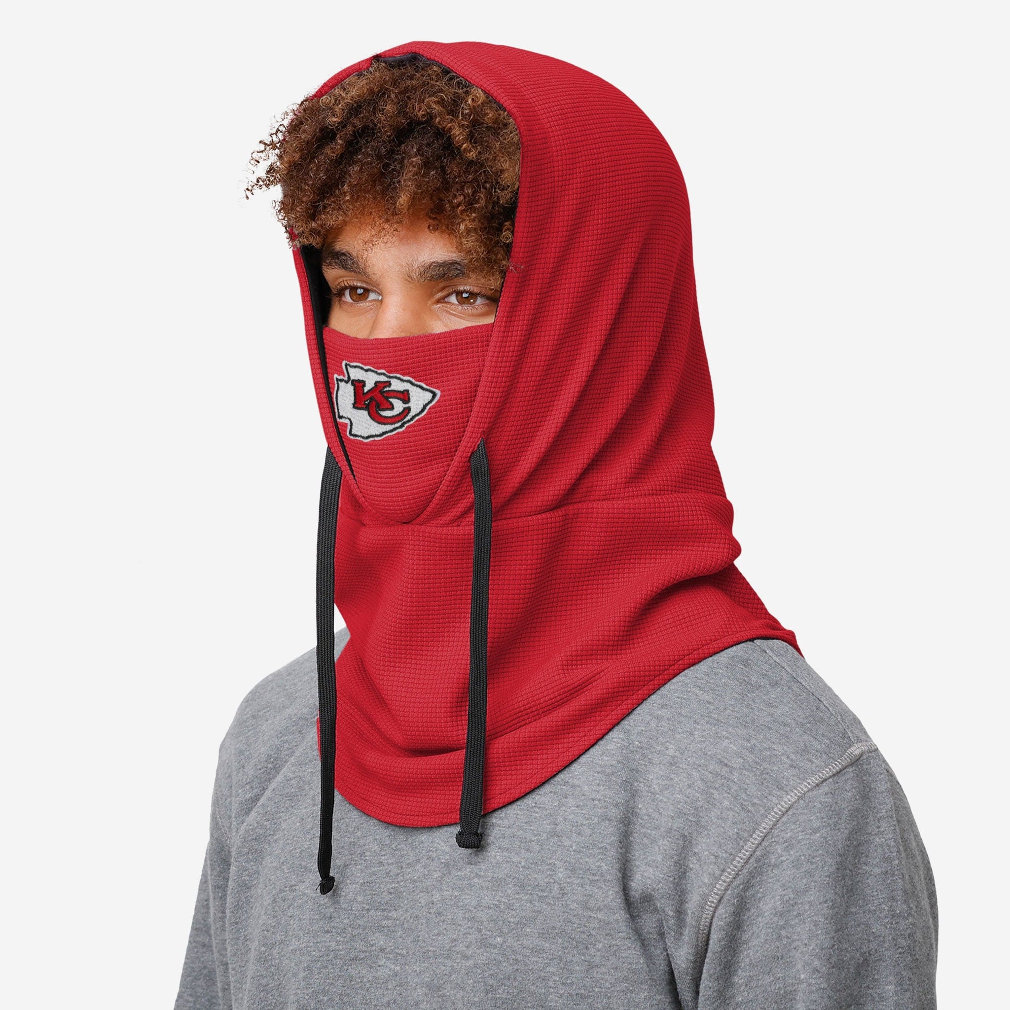 Winter weather has met its match. Brave the cold with the Kansas City Chiefs Waffle Drawstring Hooded Gaiter.