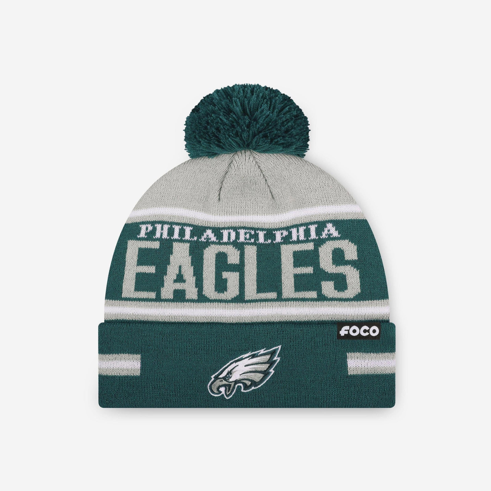 Philadelphia Eagles Big Wordmark Stripe Pom Beanie FOCO - FOCO.com