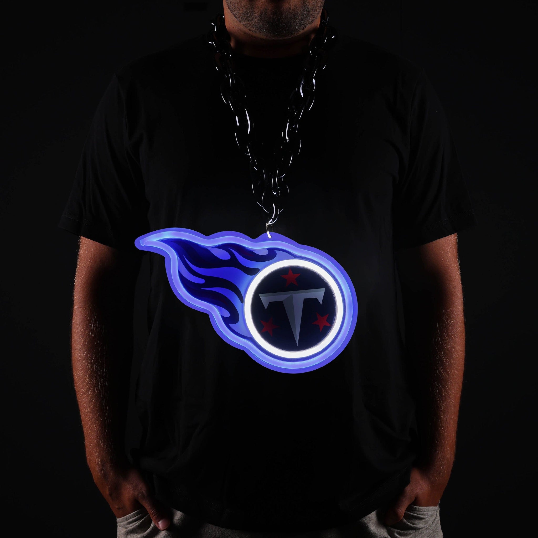 Fandom so bright, you’re going to need shades! Get ready to light things up on gamedays and beyond with the Tennessee Titans LED Neon Big Logo Chain Necklace.