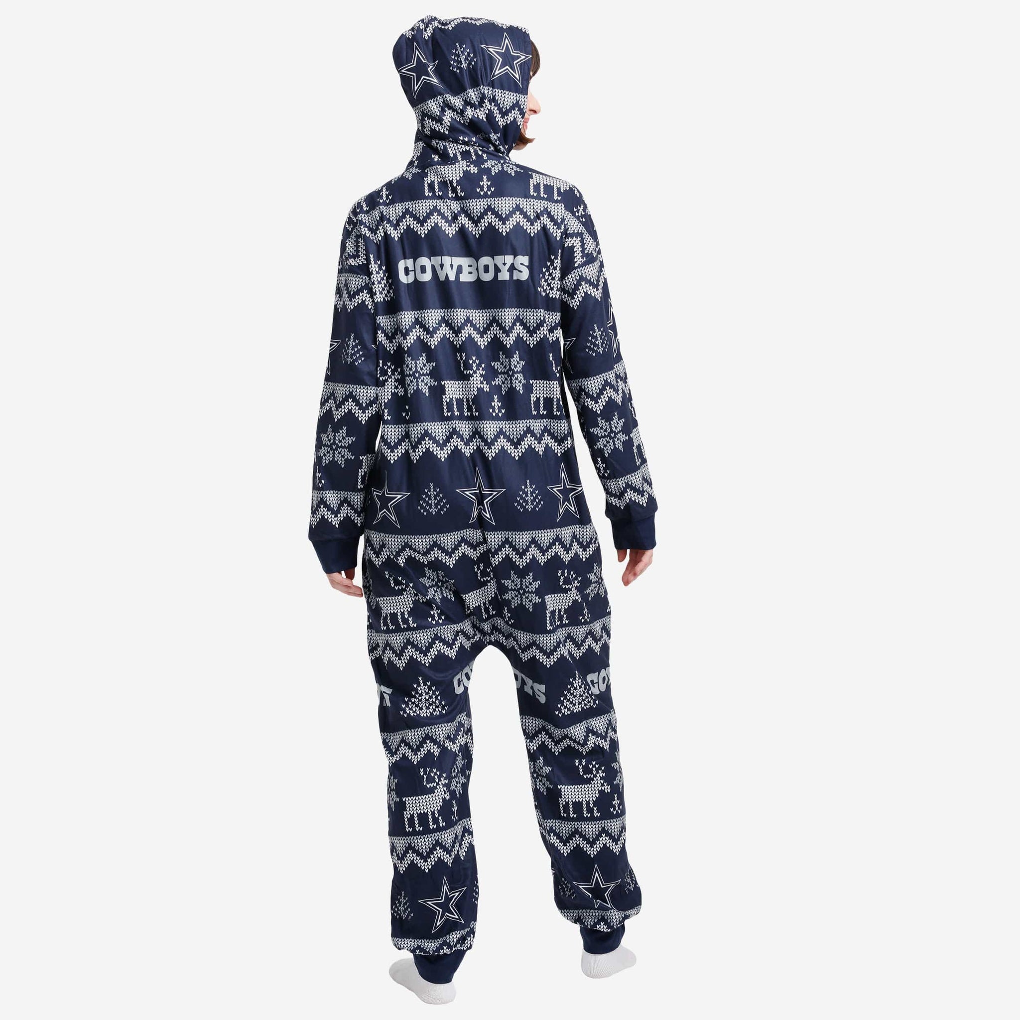 Get some matching family pajamas and dress to impress this holiday season! You won't want to miss these onesie team pajamas! These men's and women's PJ's are comfortable and show off your team spirit in the form of some sweet one piece jammies. Introducing the Dallas Cowboys Ugly Pattern One Piece Pajamas! Don't forget to take your holiday photo with the whole family wearing matching Christmas pajamas!