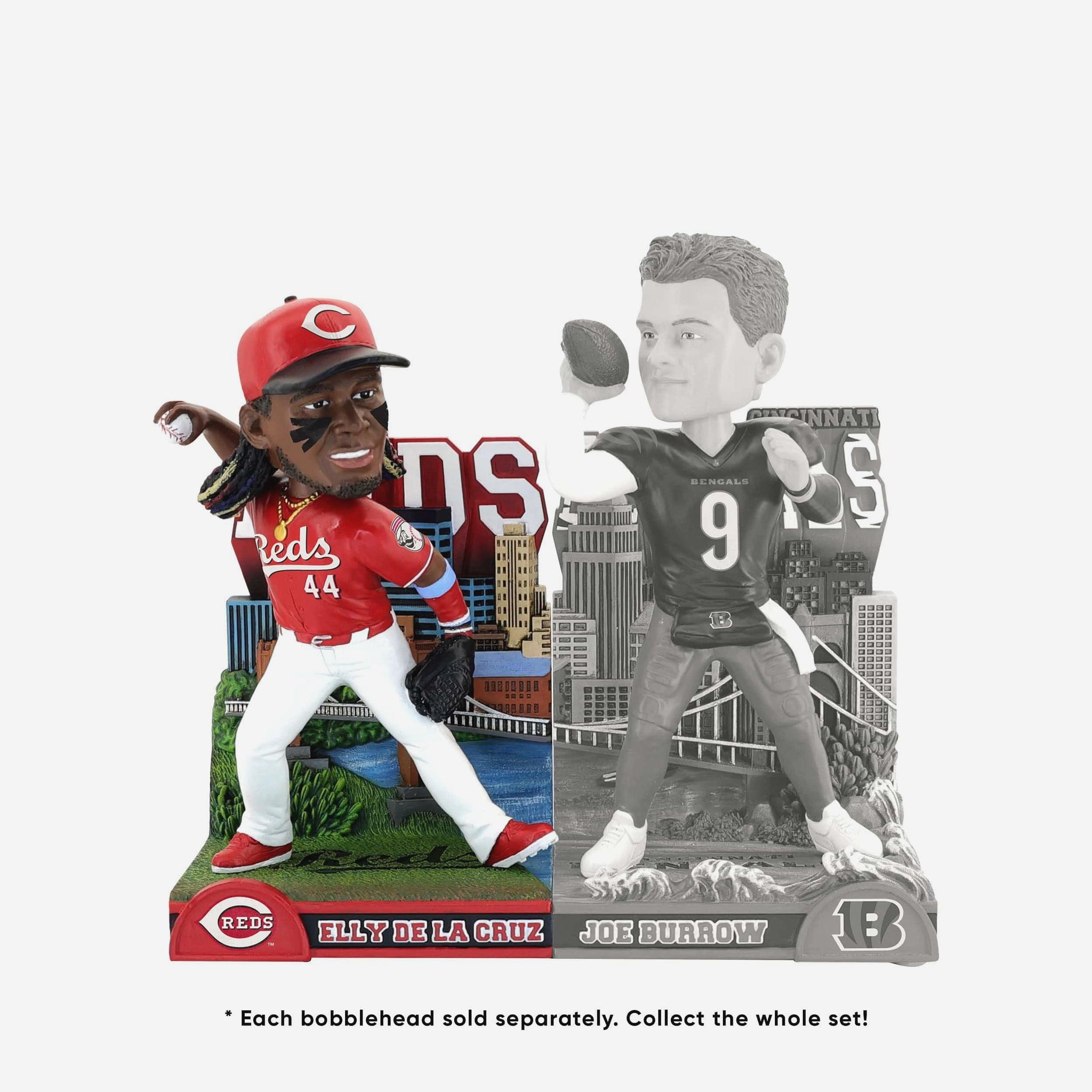 The Queen City’s lightning bolt is here! Show your Reds pride with this Elly De La Cruz Cincinnati Reds The Queen City Bobblehead. Complete the Queen City connecting set with the Joe Burrow Cincinnati Bengals The Queen City Bobblehead.