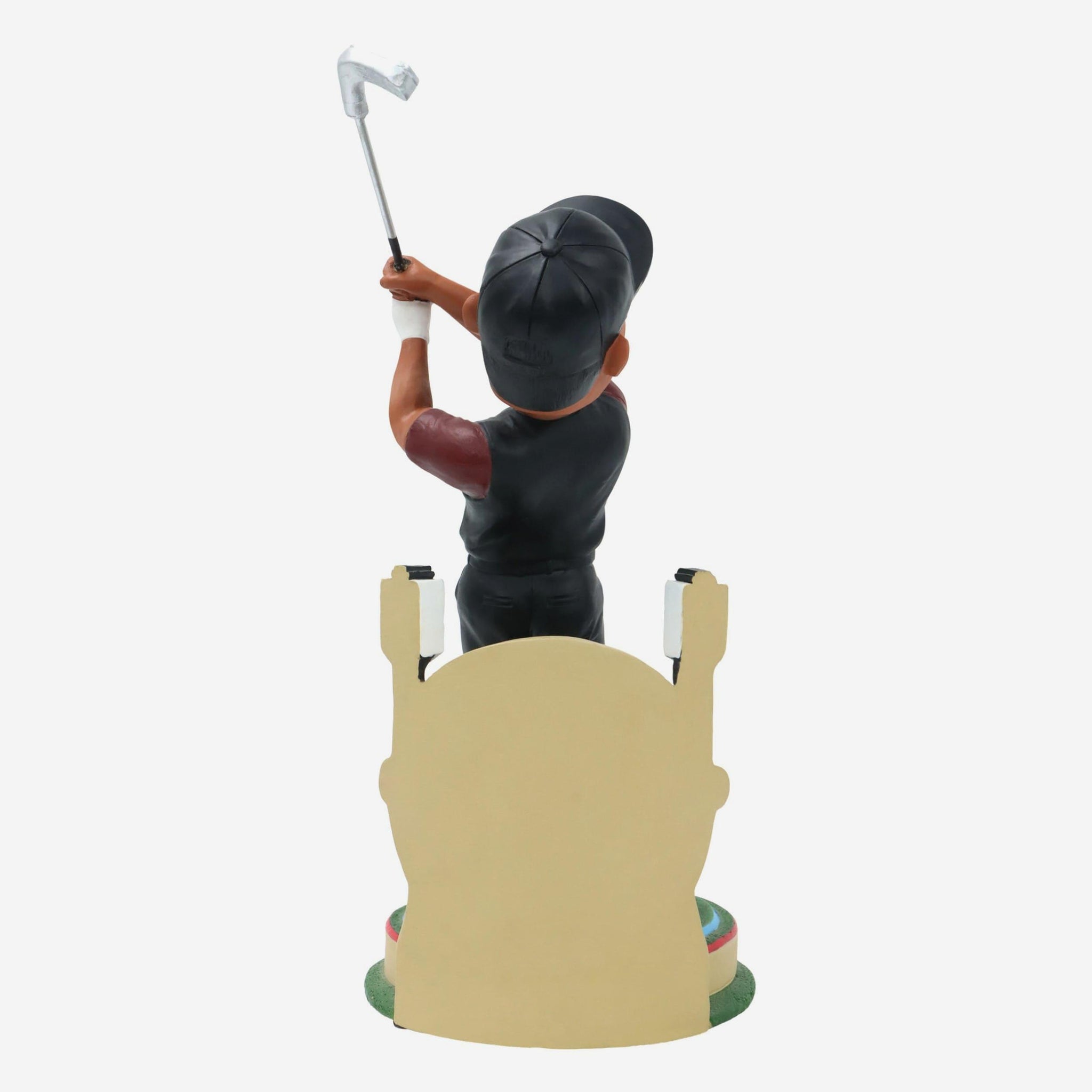 • Portrays Woods wearing his game day outfit in a swinging action pose