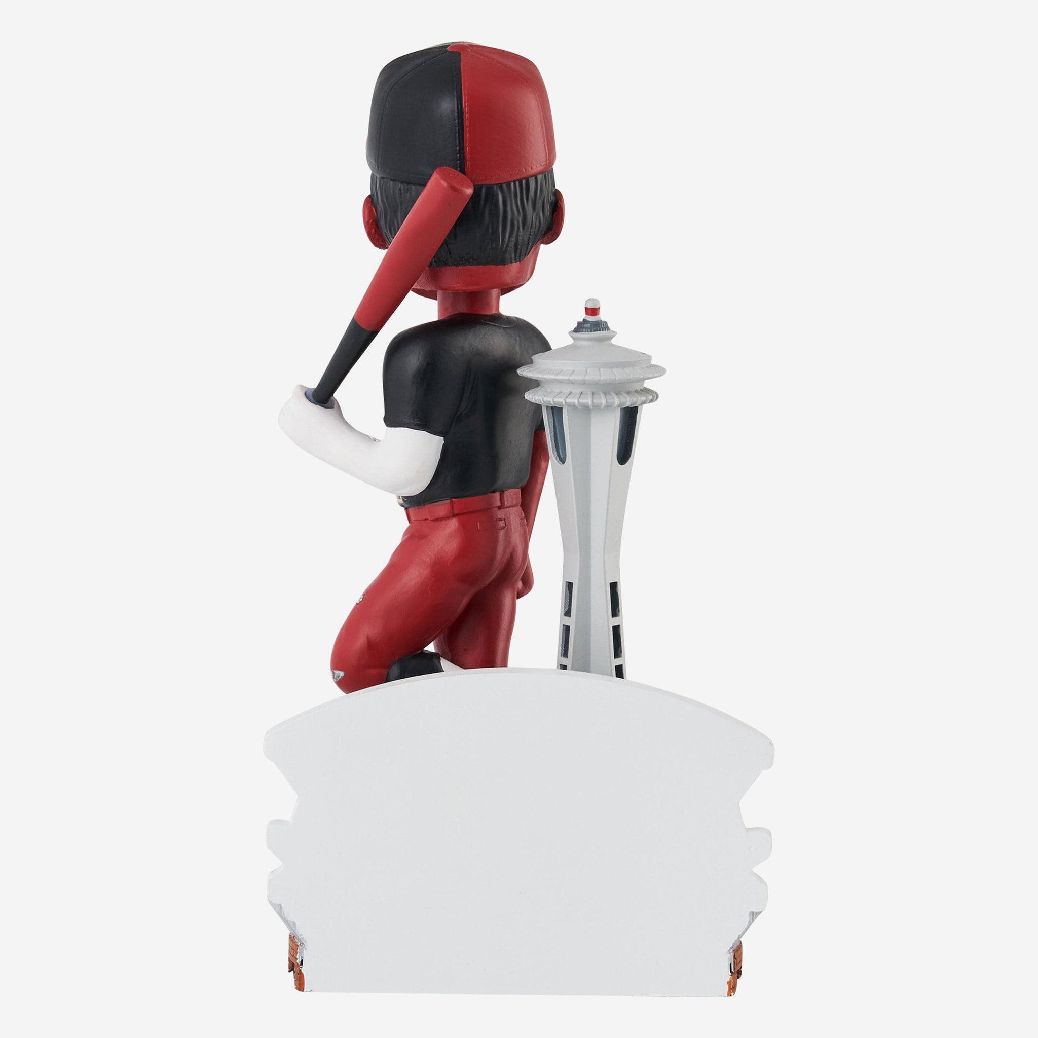 - Portrays figure wearing team-colored uniform, holding a baseball bat, and leaning against the Space Needle to bring the essence of The Emerald City to your fancave