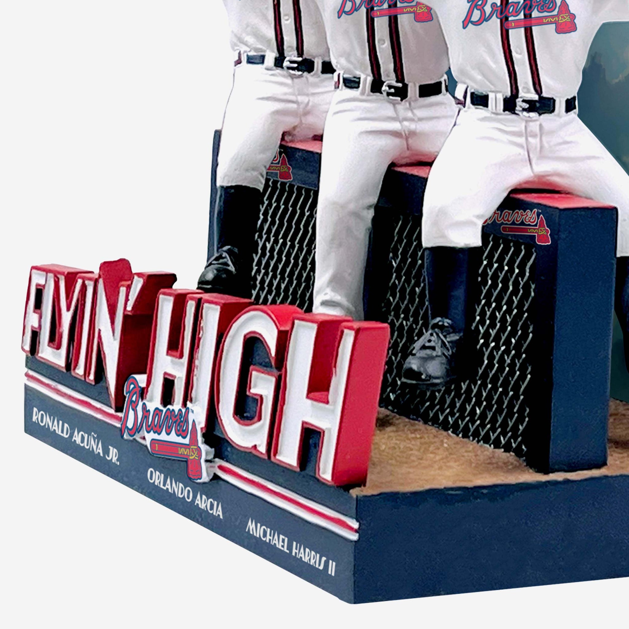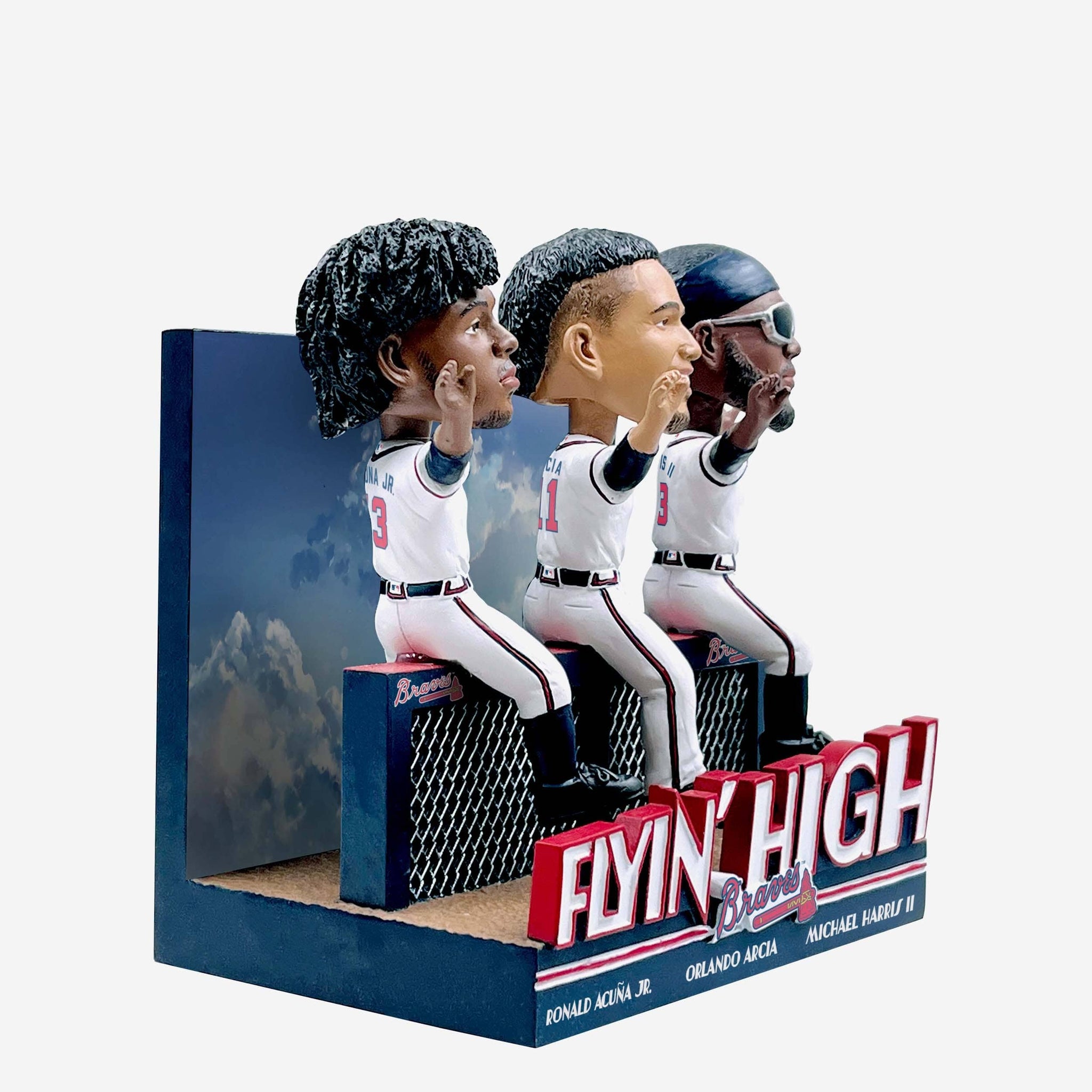 These Braves are soaring to new heights. Take to the skies with Ronald Acuña Jr., Orlando Arcia, Michael Harris II, and the Atlanta Braves Flyin’ High Mini Bobblehead Scene.