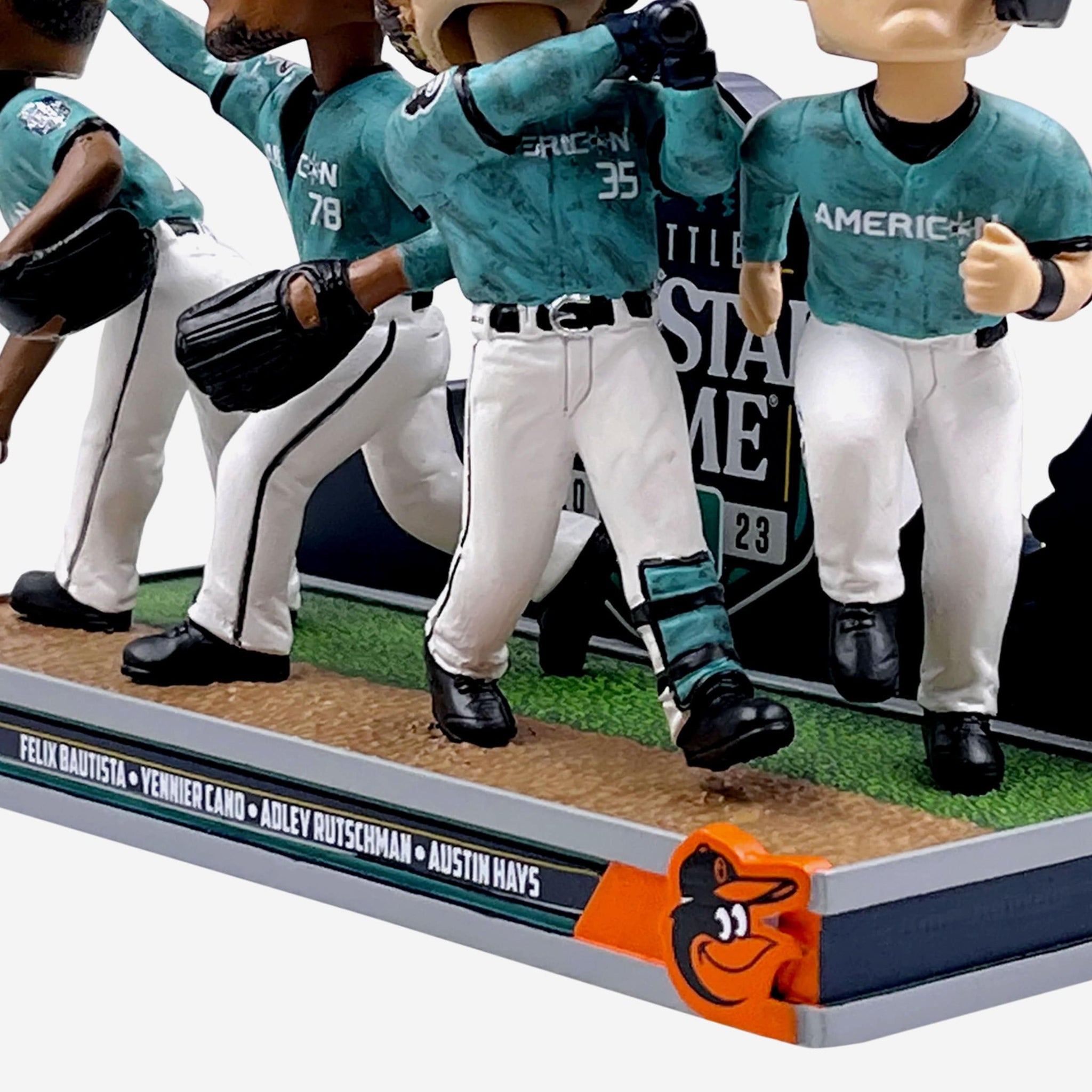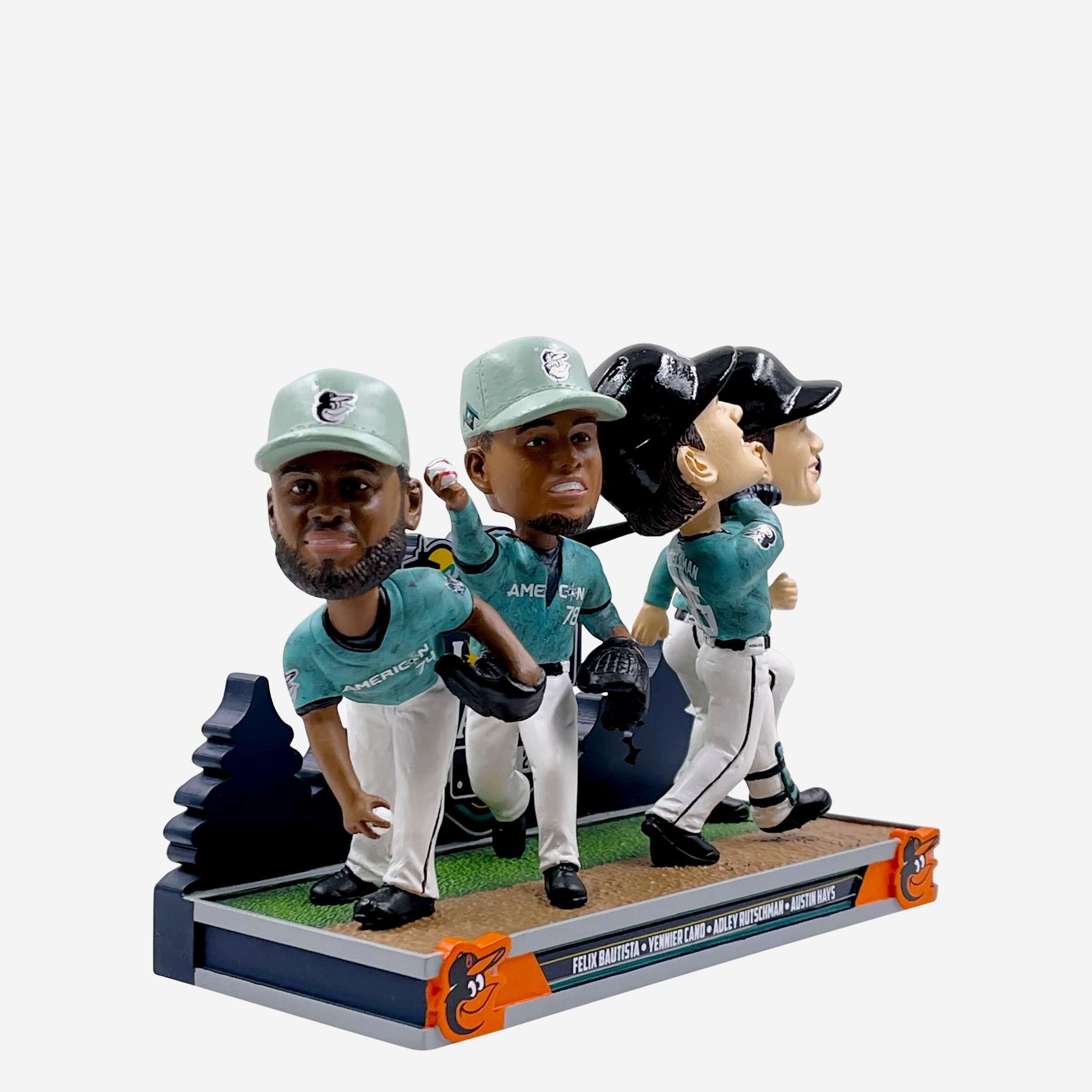 These Orioles are flying so high, they're shining among the stars. The Baltimore Orioles 2023 MLB All-Star Mini Bobblehead Scene features Adley Rutschman, Austin Hays, Félix Bautista, and Yennier Cano so you can celebrate the O's that have the fans saying "O YEAH."