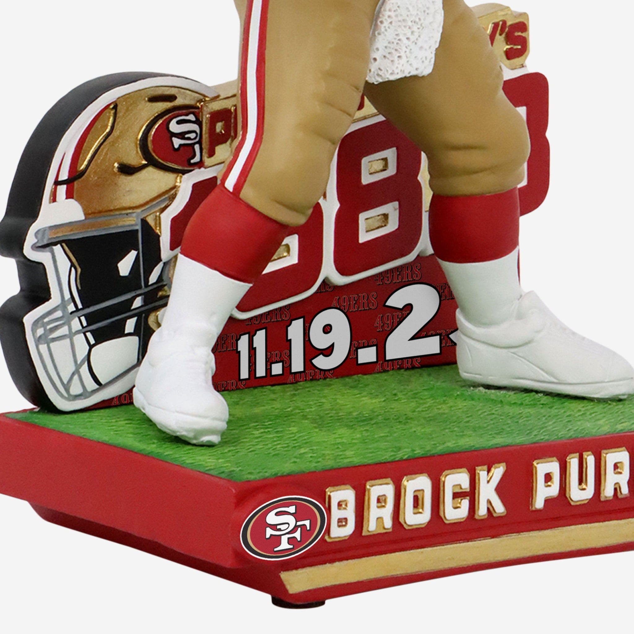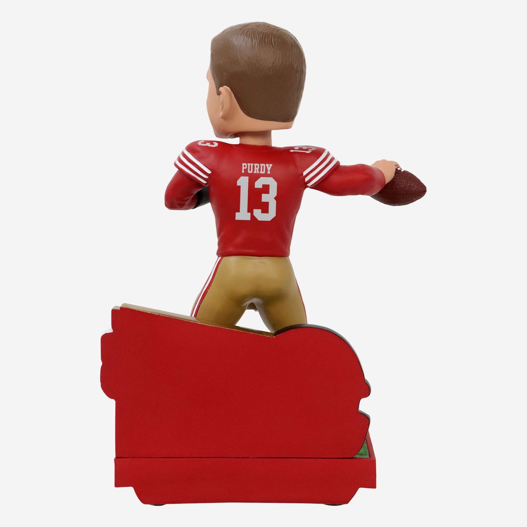 - Portrays Purdy wearing his red and gold gameday uniform in an action pose, ready to make the play of the game