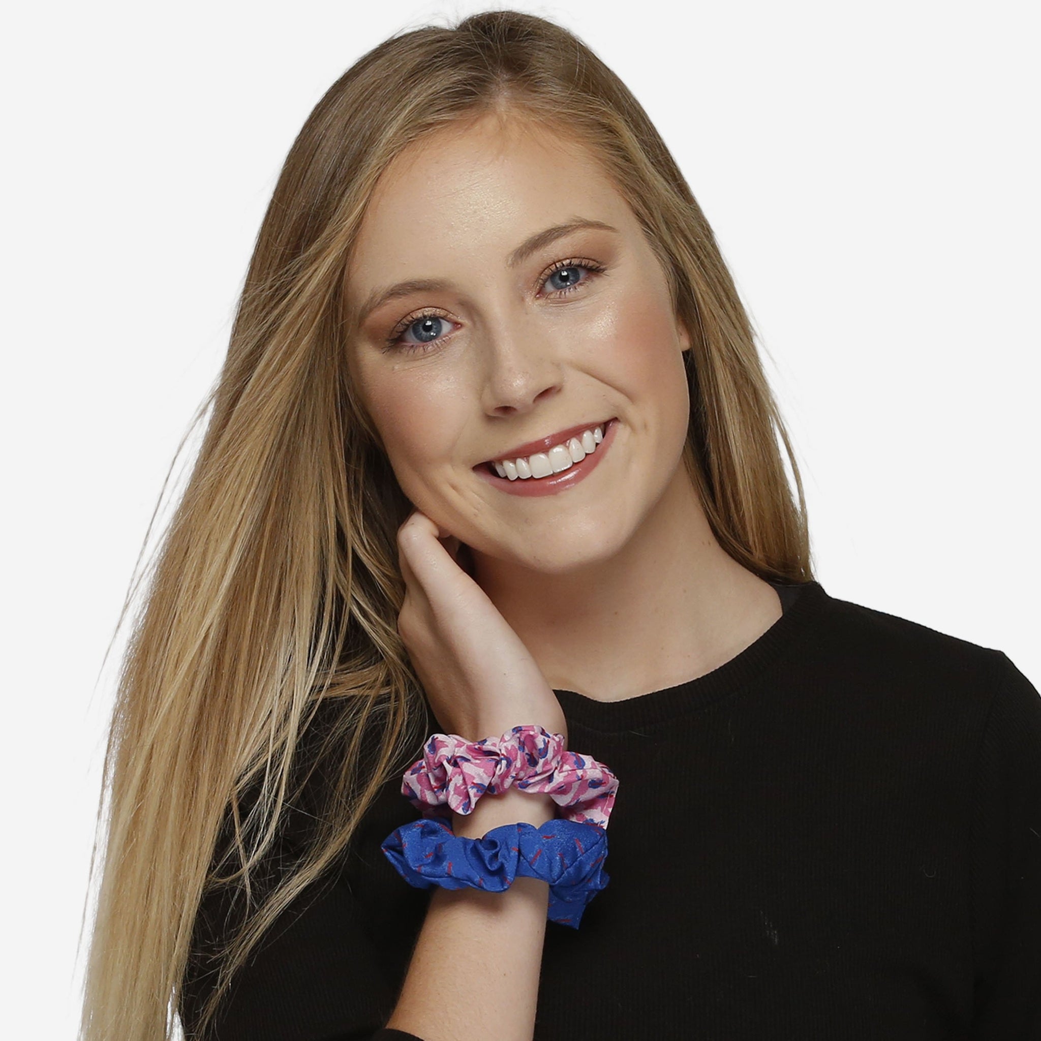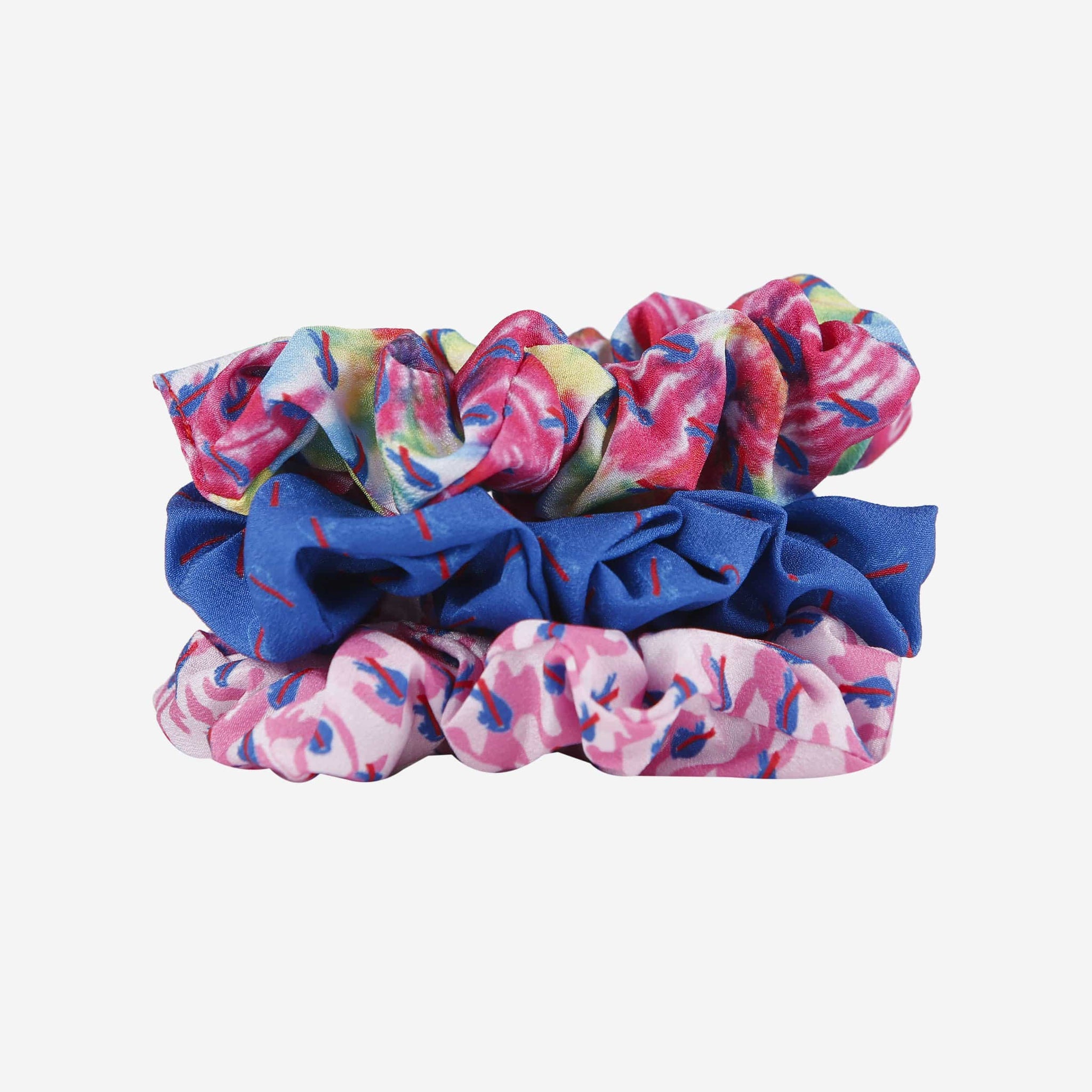 - Three-pack of hair scrunchies with unique designs, because three scrunchies are better than one