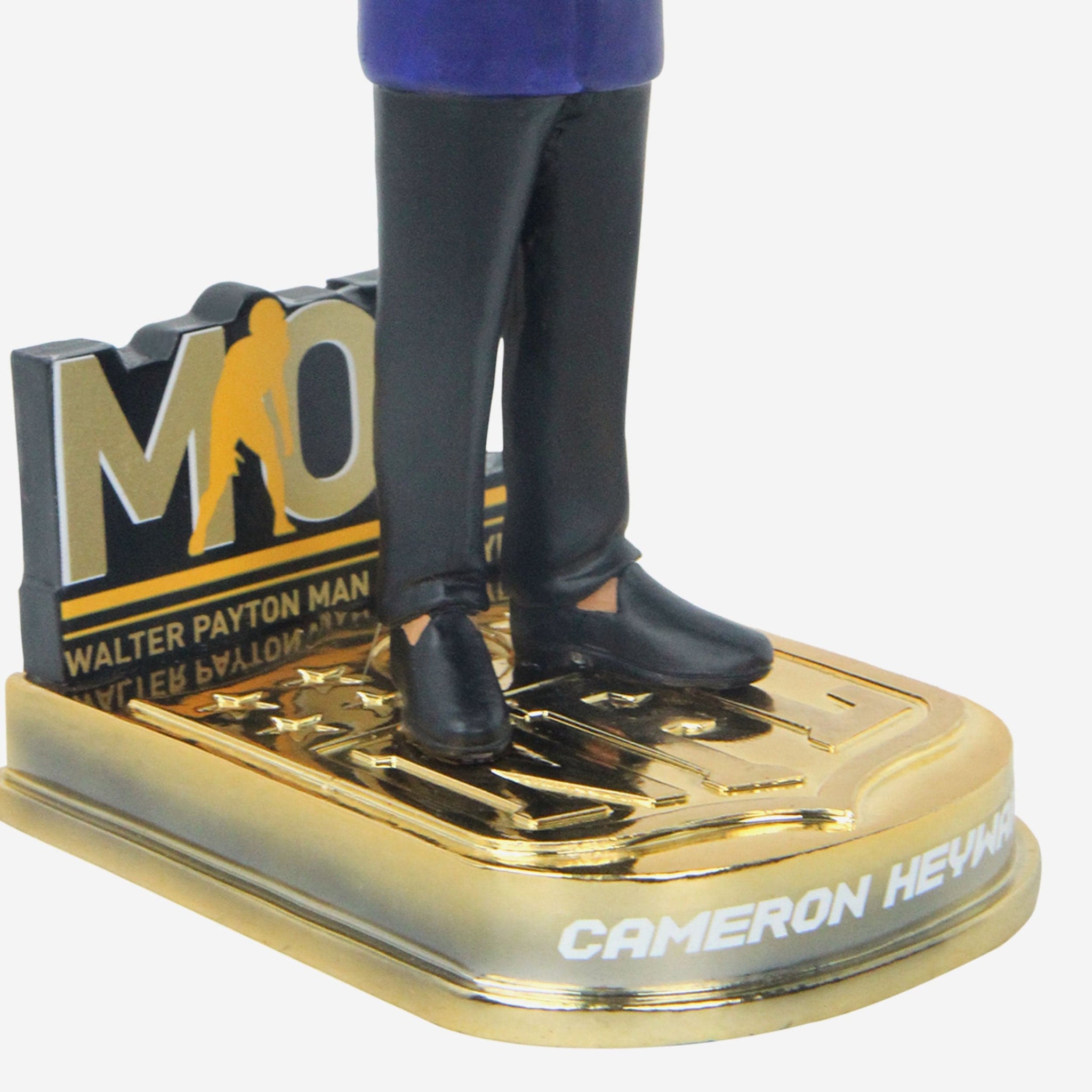 - Gold-colored base with NFL logo display, because this guy is good as gold