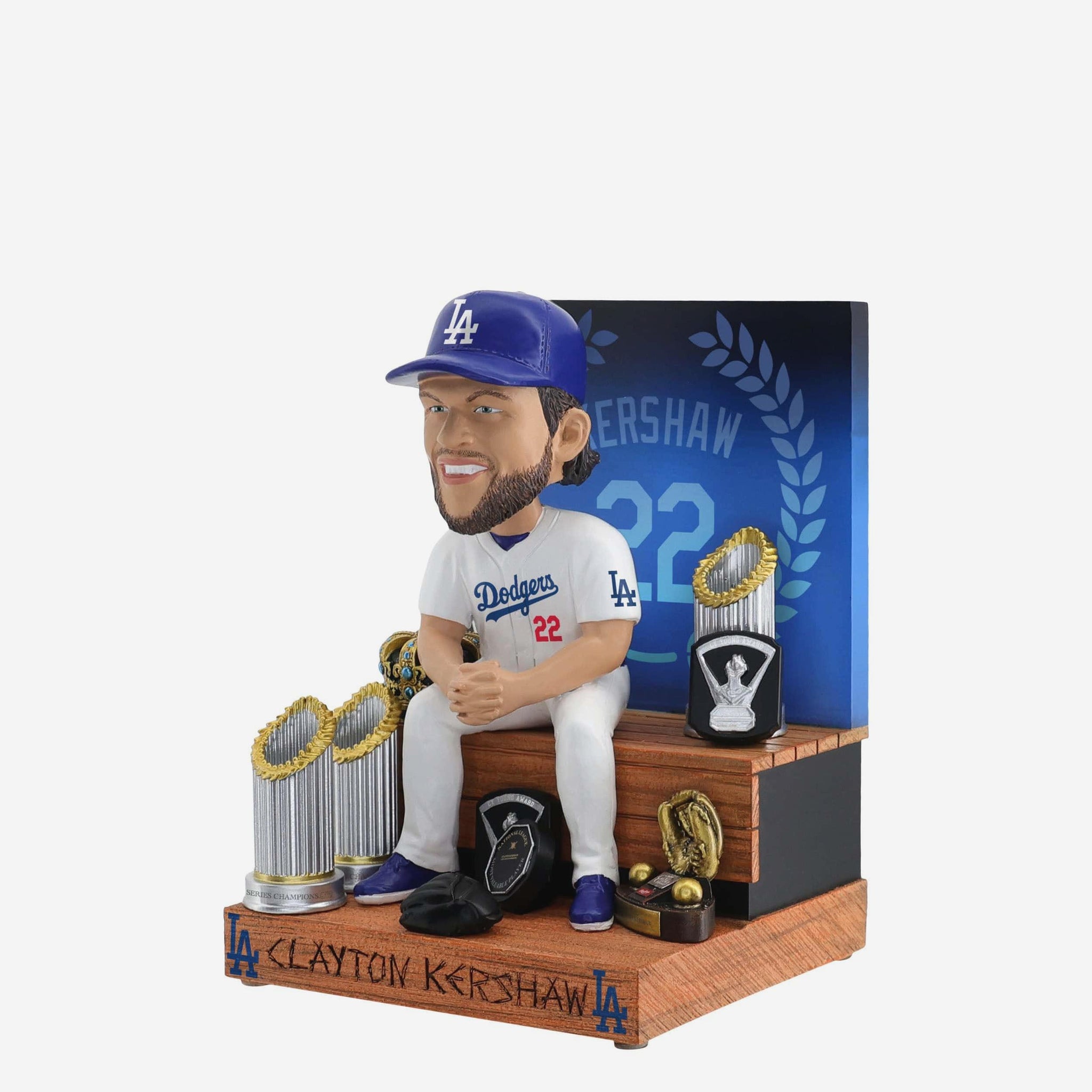 Dodgers fans, celebrate a career built on dominance and legacy! Put an all-time great on display with this Clayton Kershaw Los Angeles Dodgers Award Collection Mini Bobblehead Scene, featuring iconic hardware that tells the story of a legendary run.
