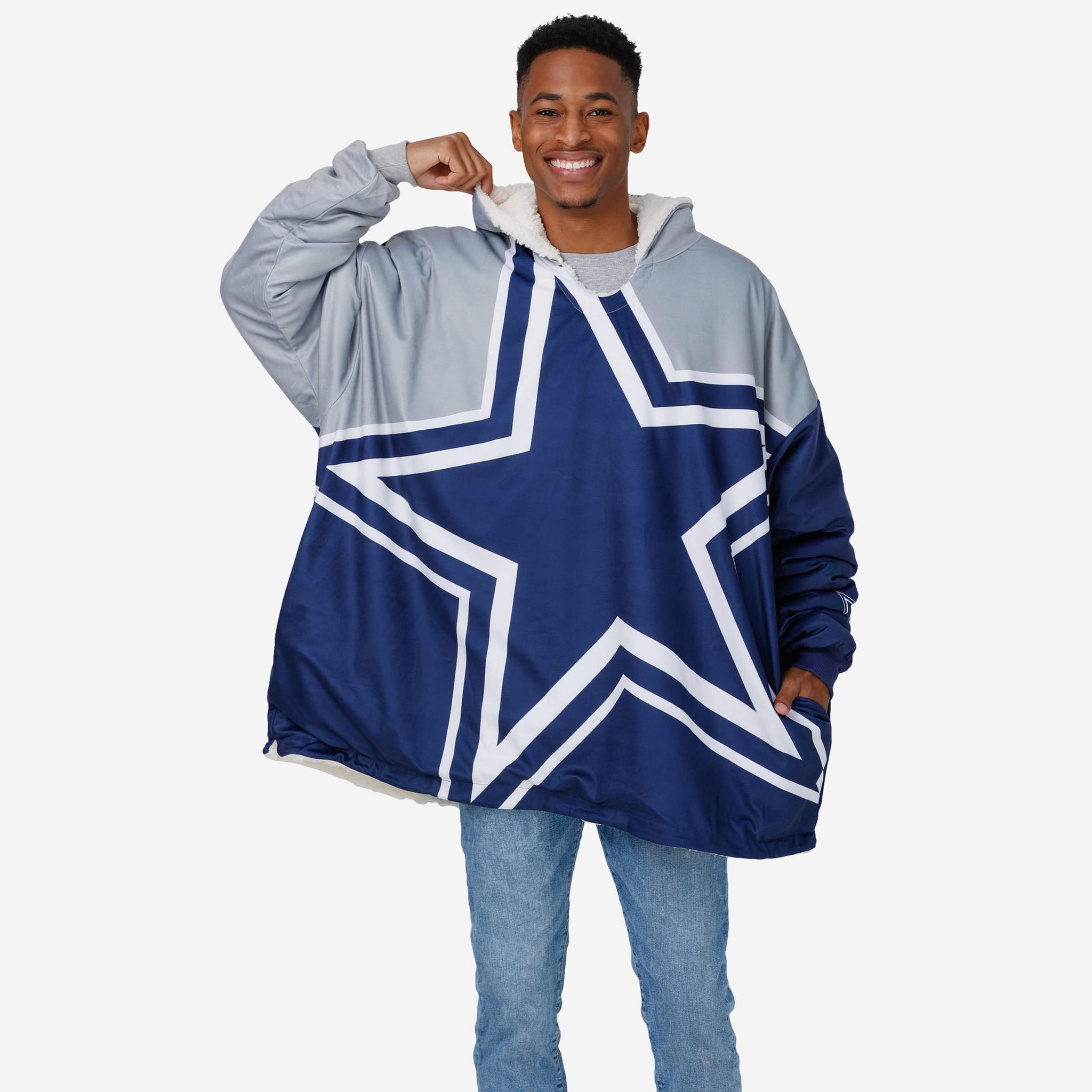 Never before has fandom looked so good and felt so relaxing. Lounge like a legend while you cheer your team on to victory by rocking this Dallas Cowboys Reversible Colorblock Hoodeez.