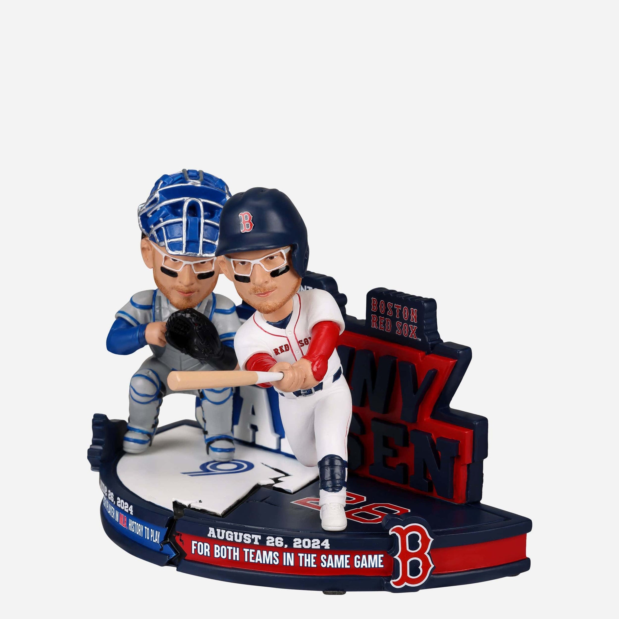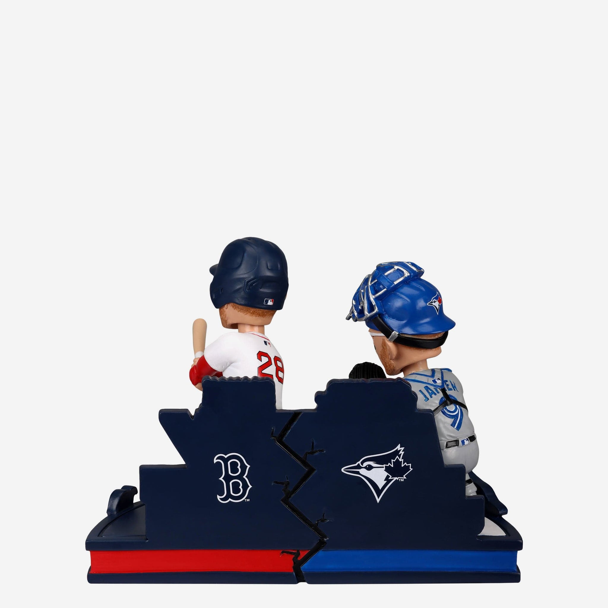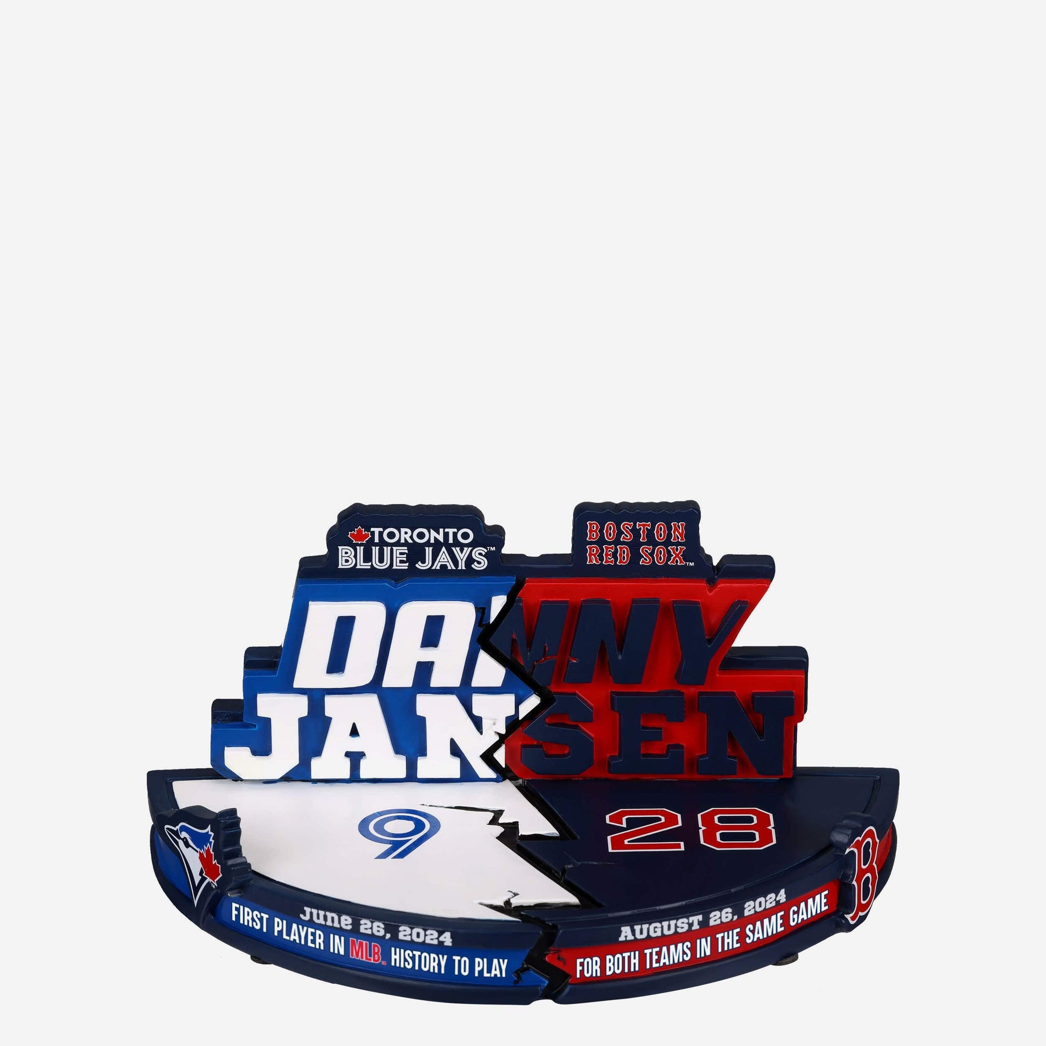 The first player in MLB history to play for two teams in one game: Danny Jansen. Bring his historic switcheroo to your collection with the Danny Jansen Toronto Blue Jays & Boston Red Sox Two Teams In One Game Dual Bobblehead.