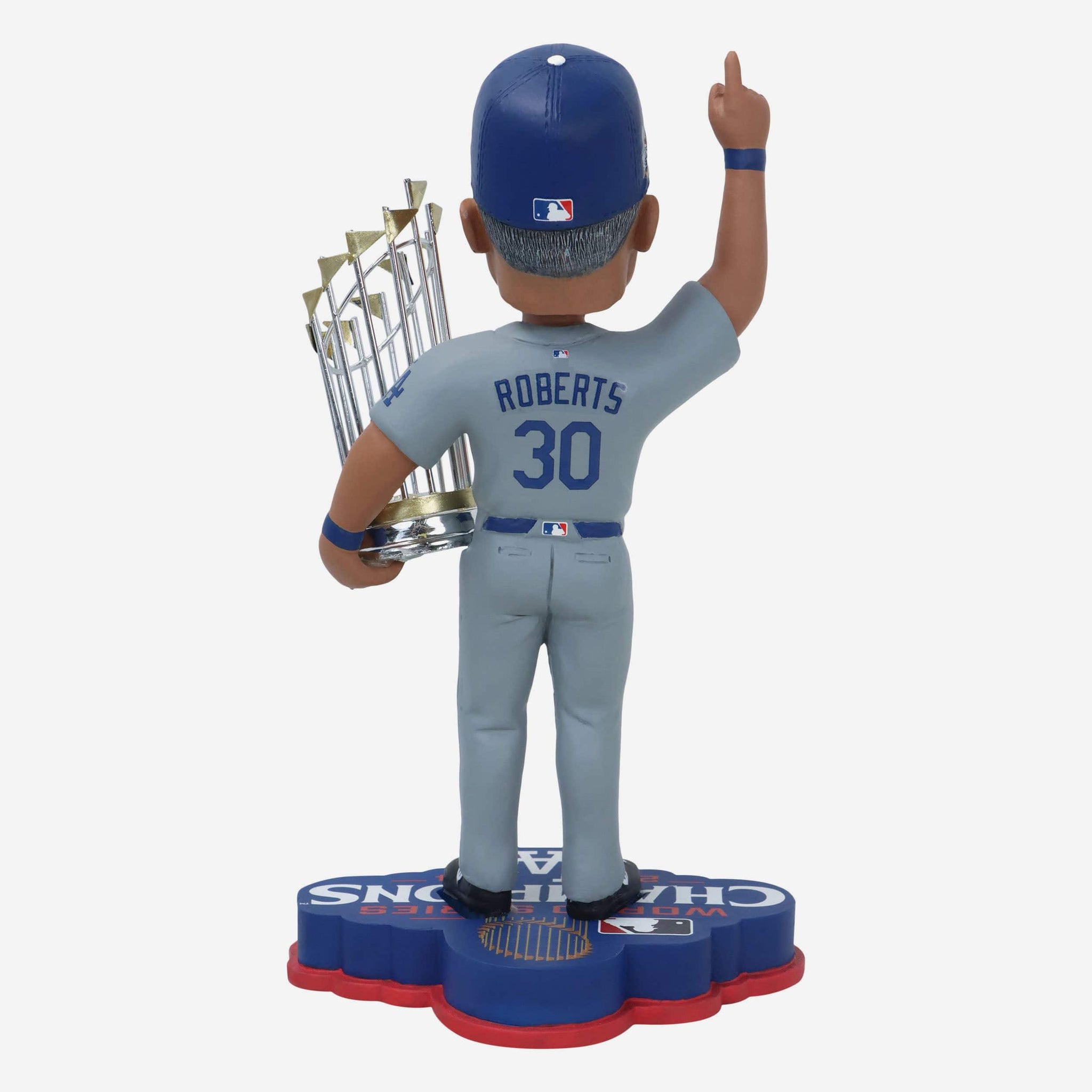 - Portrays Roberts posing in his white gameday uniform and holding World Series championship trophy, because you've gotta show off the hardware