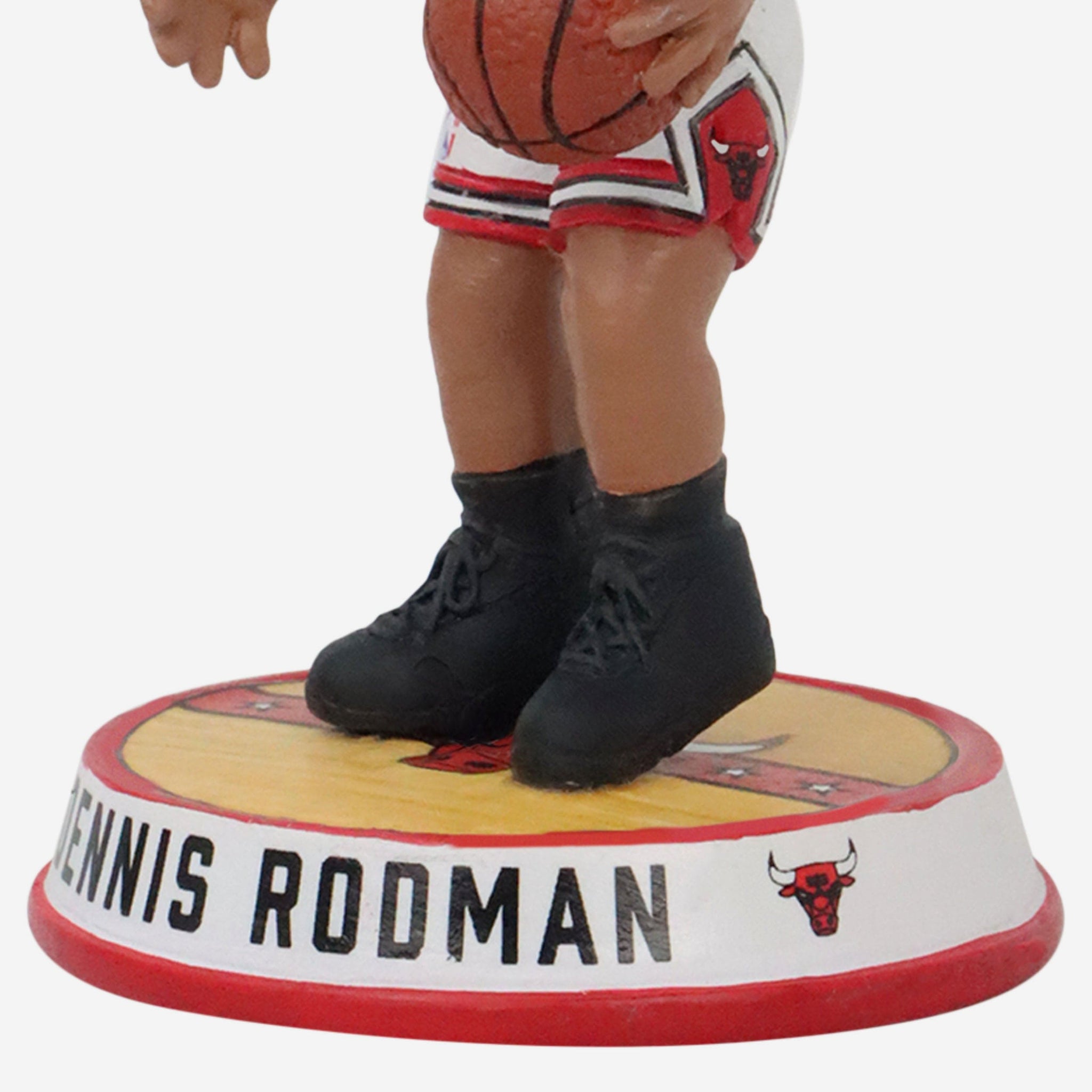 Hit the hardwood with Dennis the Menace! Prove a little bit of home court advantage goes a long way with the Dennis Rodman Chicago Bulls Court Stripe Mini Bighead Bobblehead.