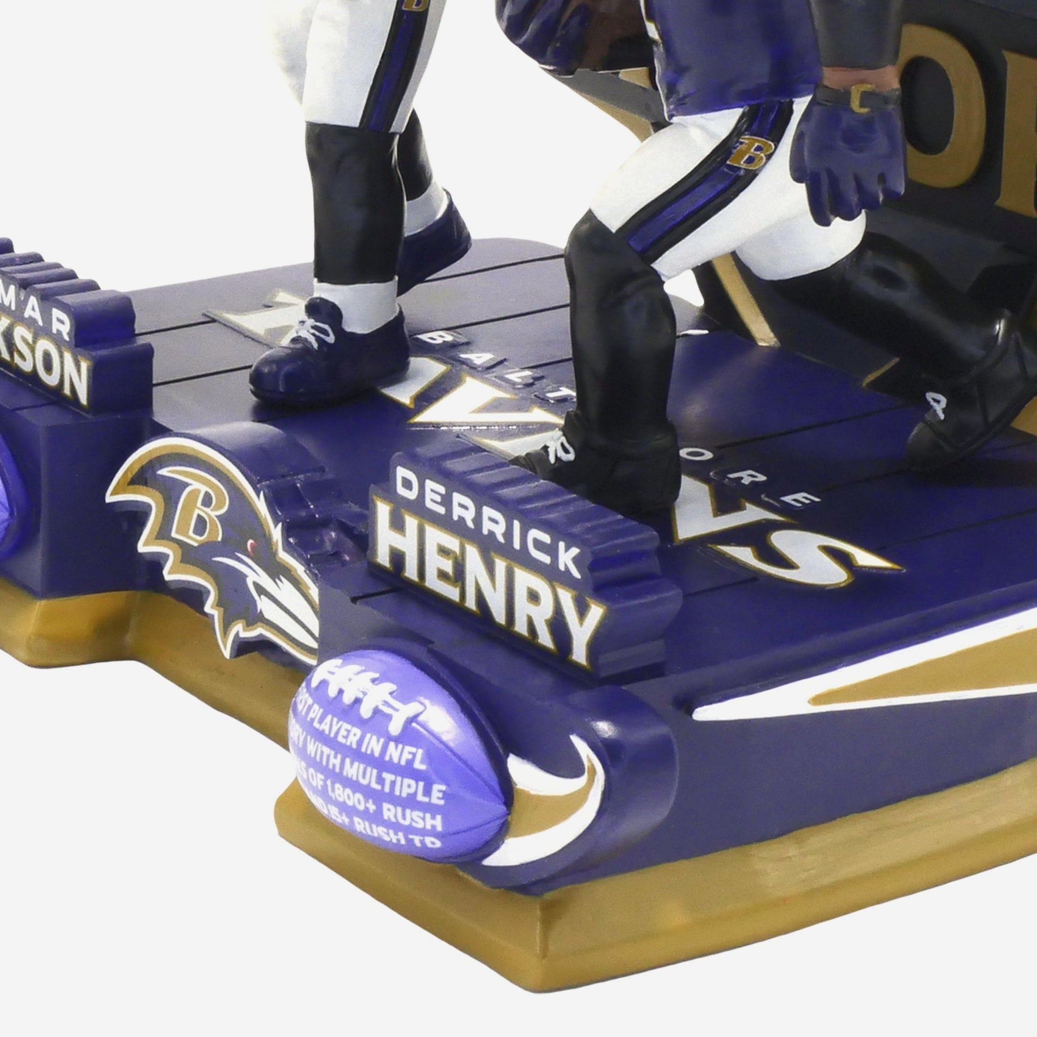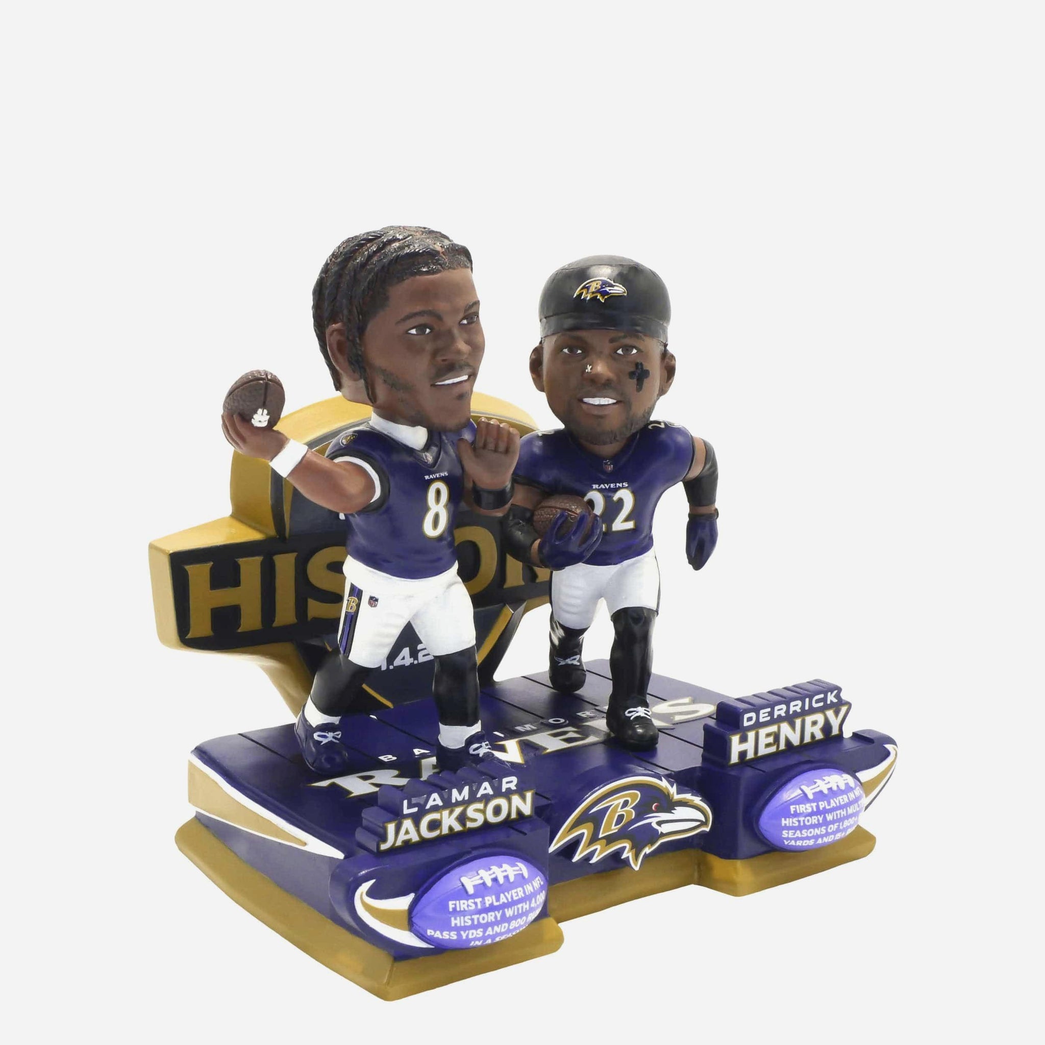 In the air and on the ground, this duo had a season of firsts on the field! Claim your spot in the record books with the Derrick Henry & Lamar Jackson Baltimore Ravens NFL History Makers Dual Bobblehead.