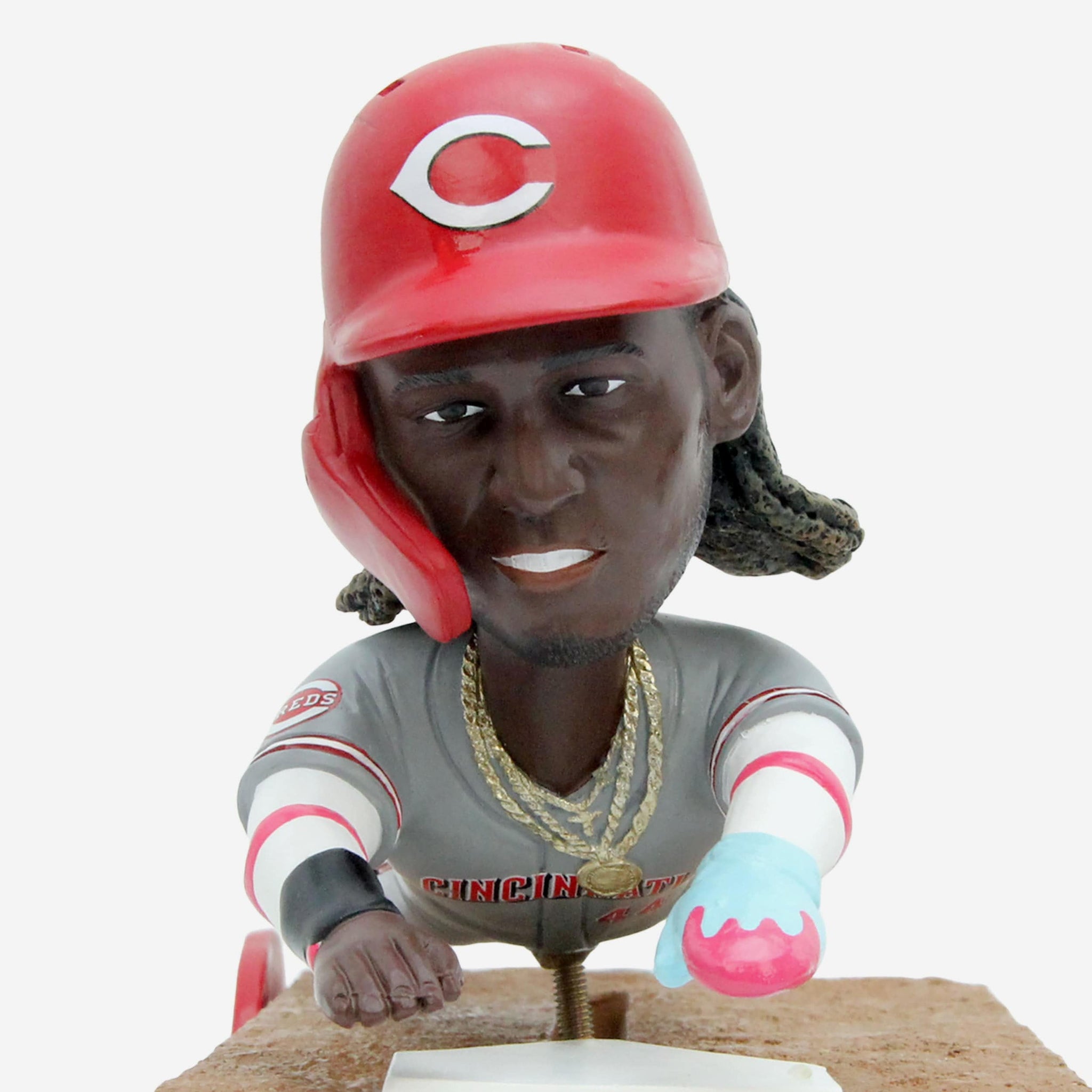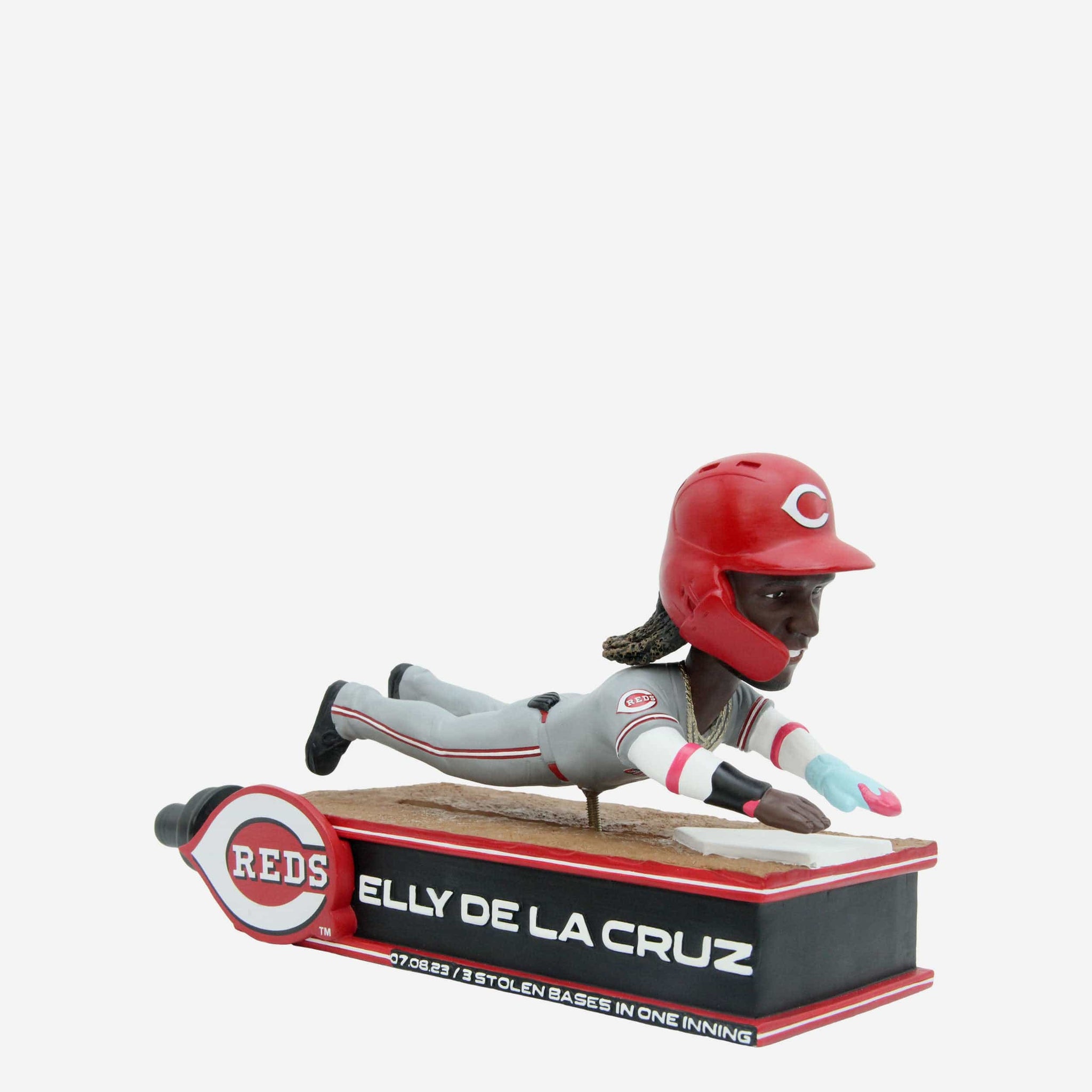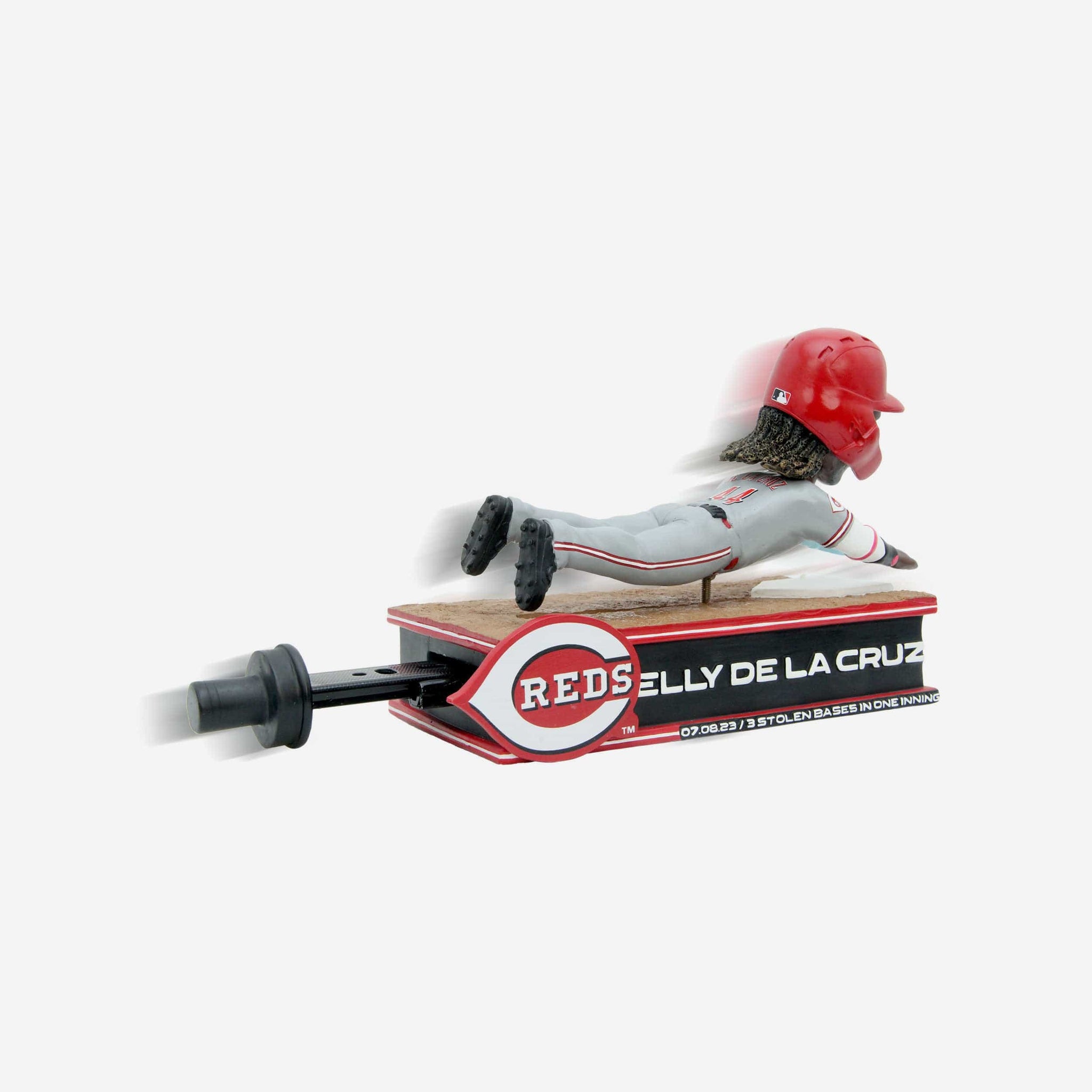 Stole second. Stole third. Stole home. Make your way all around the basepaths with the Elly De La Cruz Cincinnati Reds Stolen Base Trifecta Bobblehead. And re-create his daring play yourself with the sliding lever in the base.