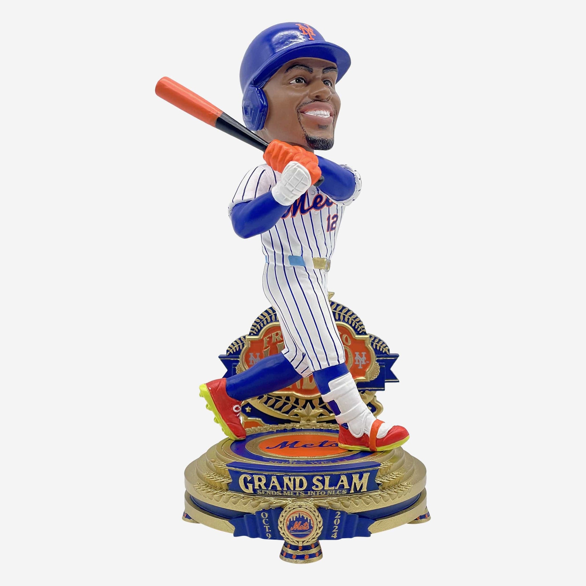 • ”GRAND SLAM SENDS METS INTO NLCS” and “OCT. 9 2024” text displays on front of base to bring your fancave some lindsanity