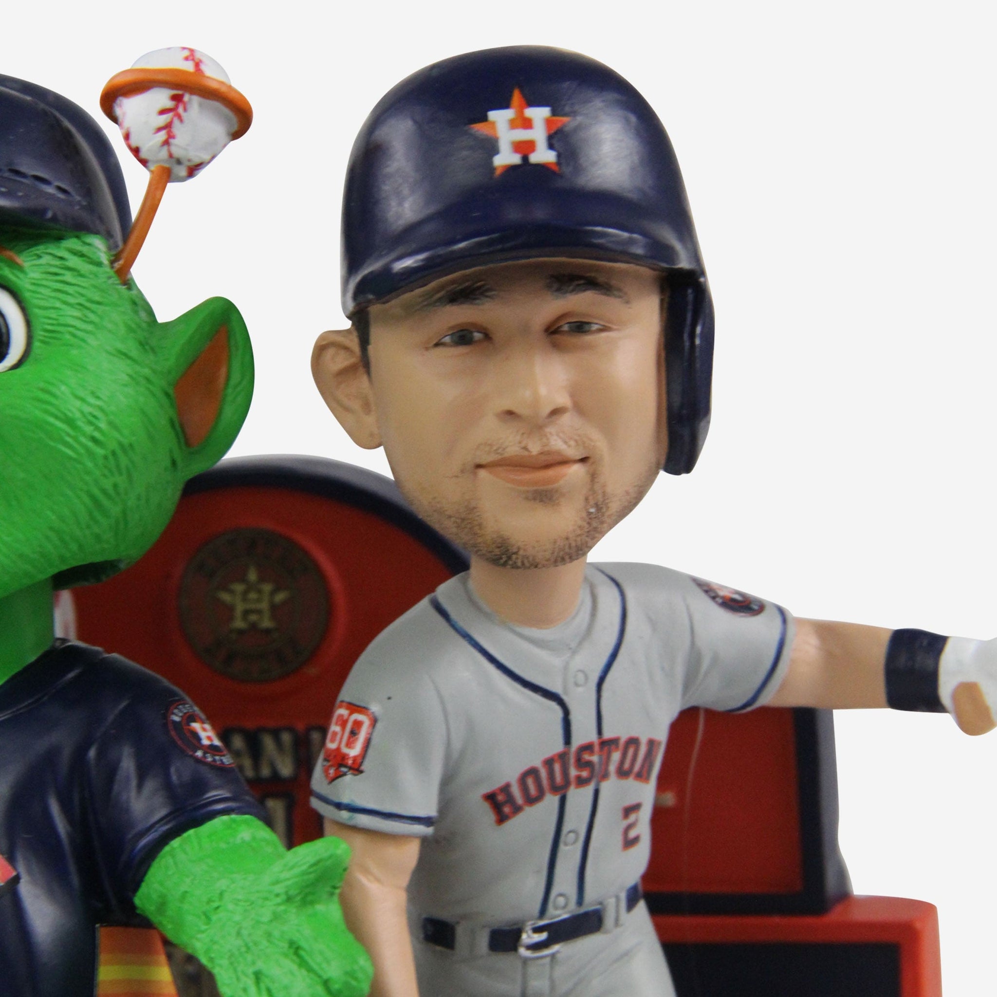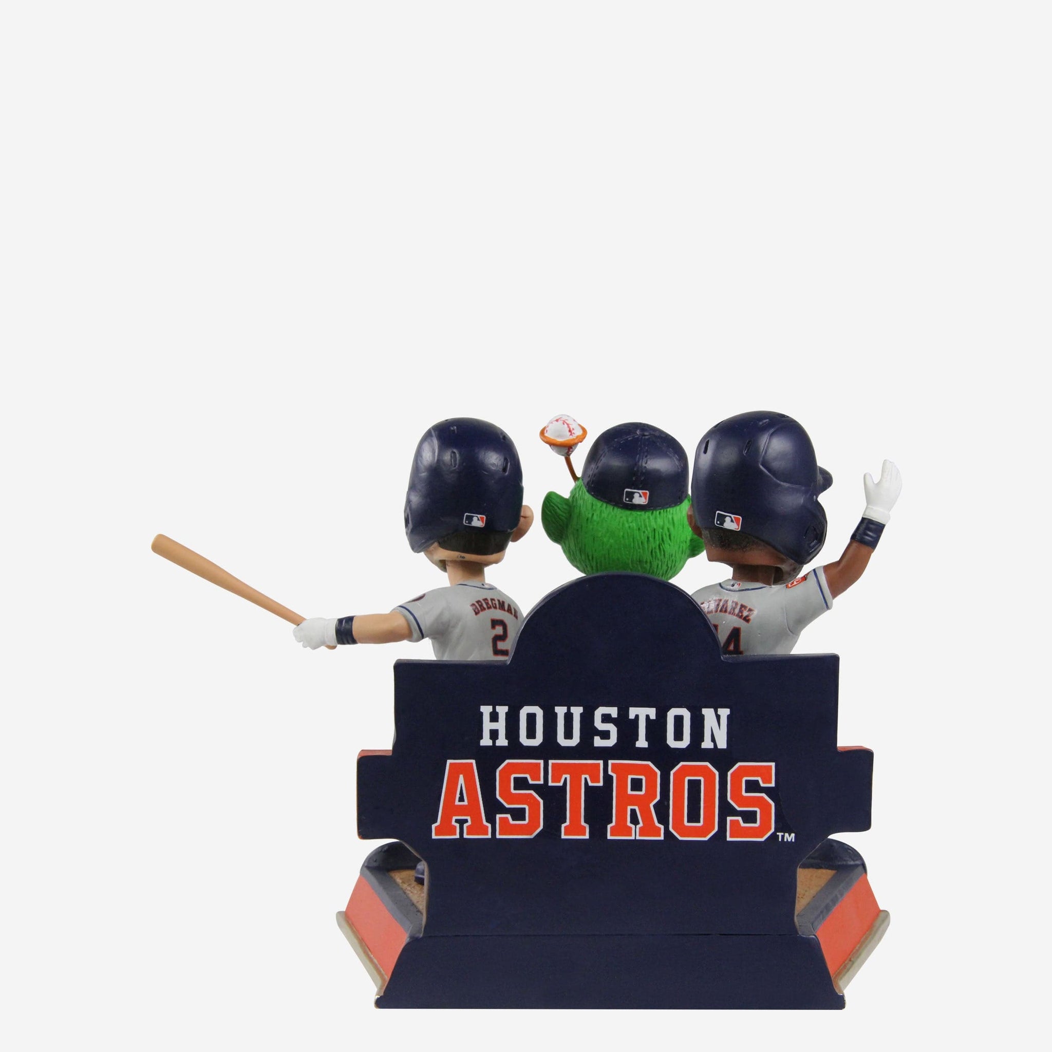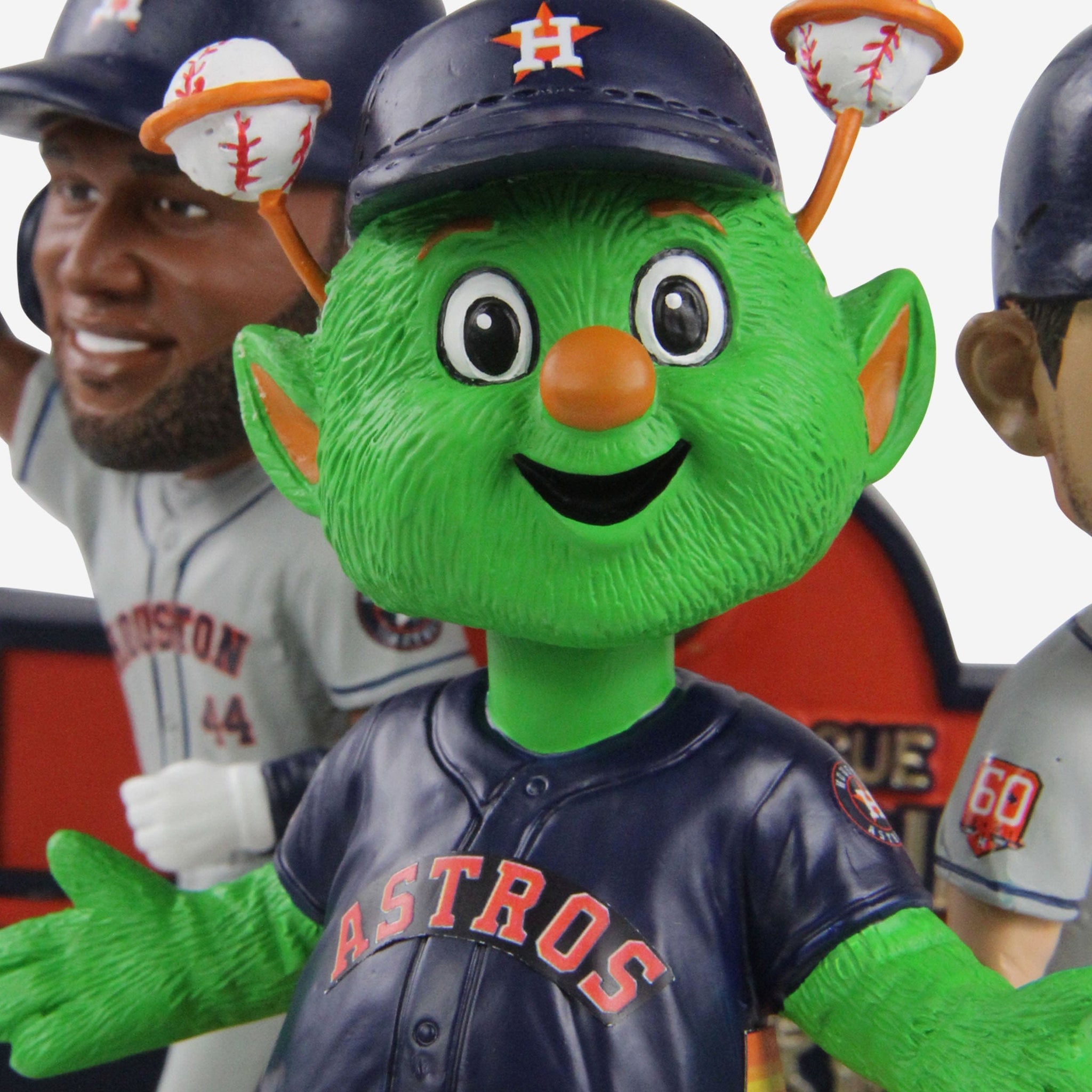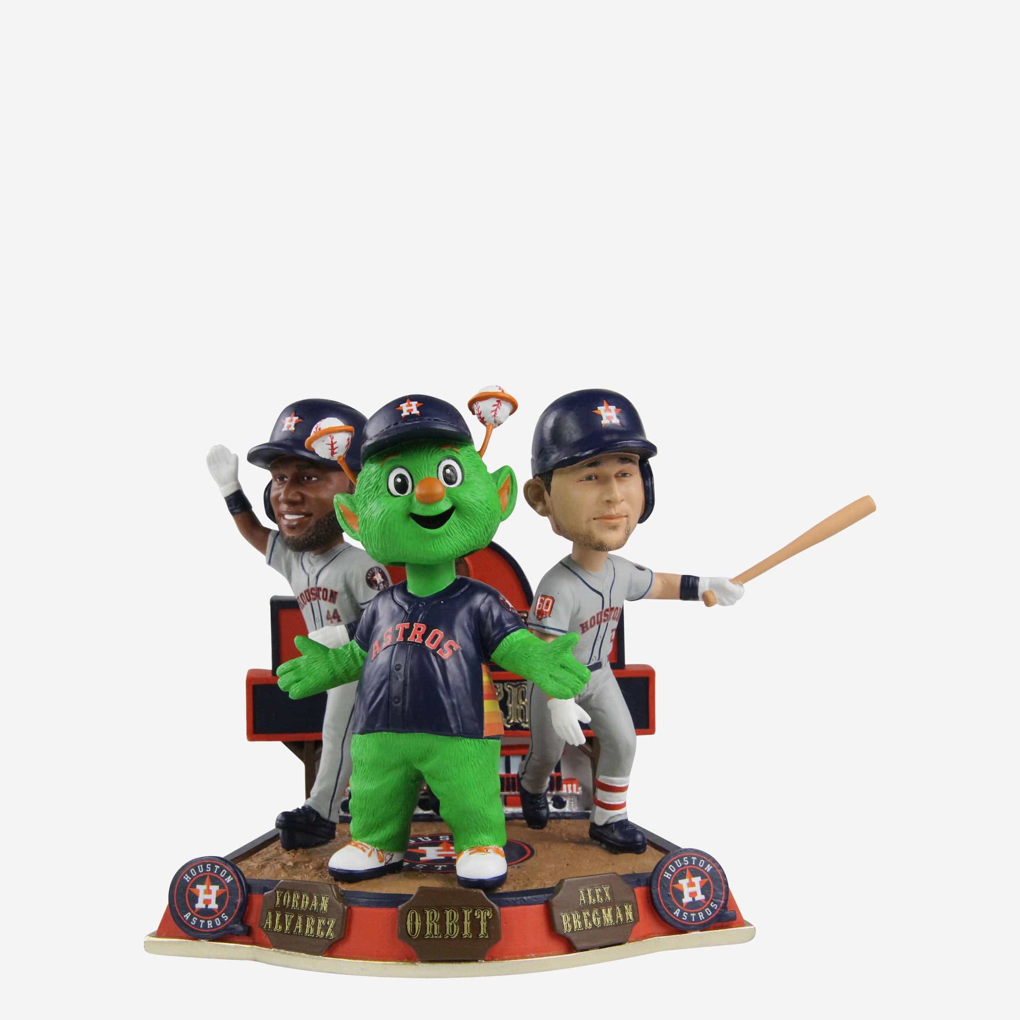 • Portrays Yordan Alvarez, Alex Bregman, and Orbit posing in their gameday uniforms, ready to celebrate the big win