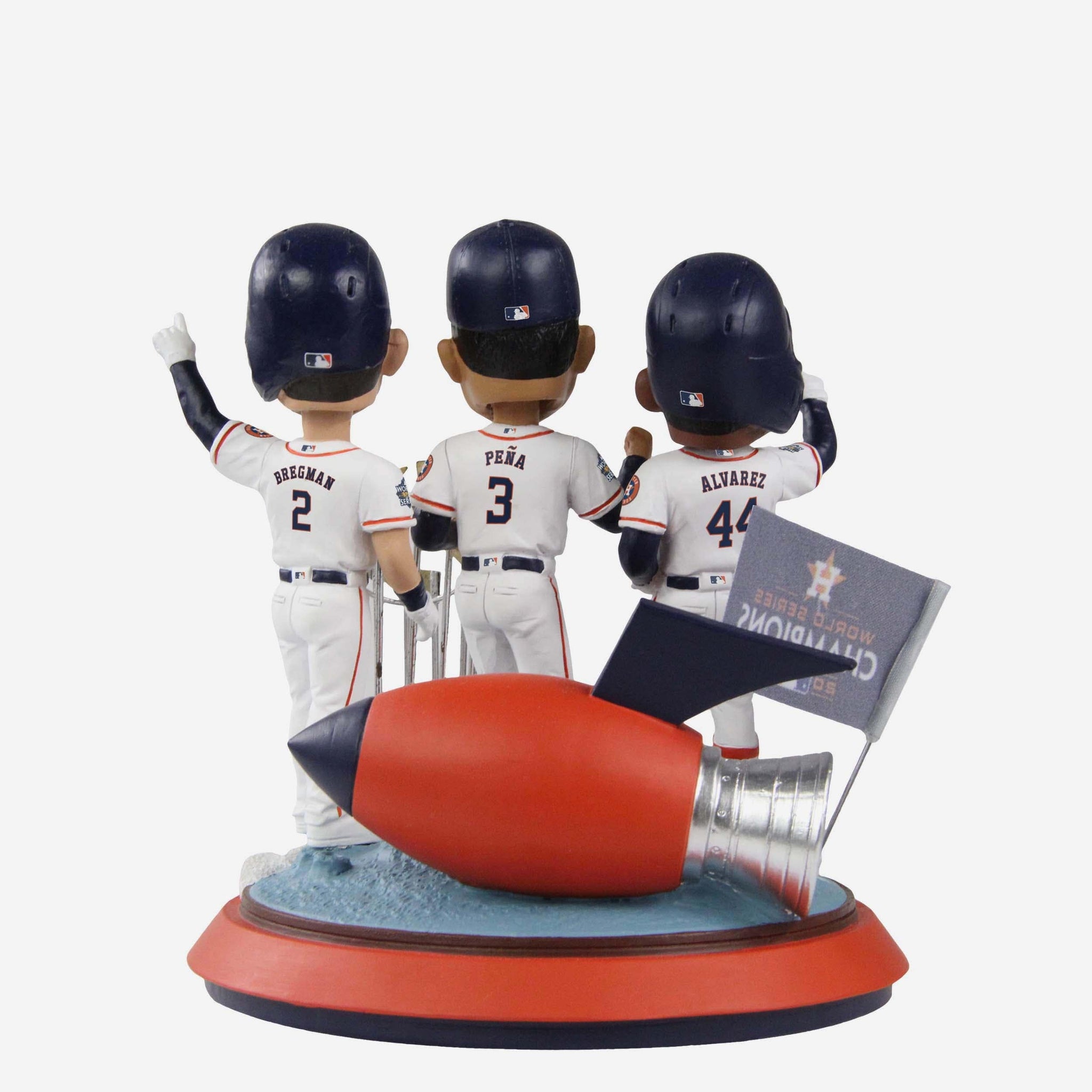Aim for the moon. Even if you miss, you'll still find yourself celebrating among these championship stars. Yordan Alvarez, Jeremy Peña, and Alex Bregman are ready for launch with the Houston Astros 2022 World Series Champions Rocketmen Mini Bobblehead Scene.