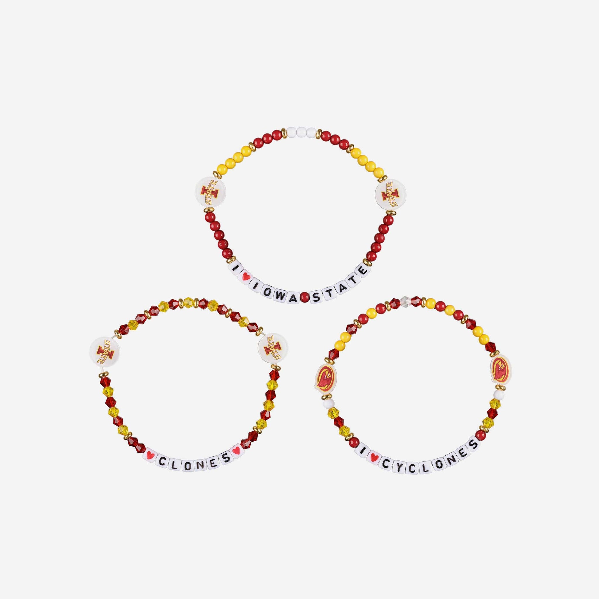 Accessorize and maximize your fandom while impressing your fellow fans with this Iowa State Cyclones 3 Pack Friendship Bracelet. These matching friendship bracelets have an all-over team-colored design and team logo displays, which makes them the perfect way to show your support for the Iowa State Cyclones and get in on the latest accessory craze.