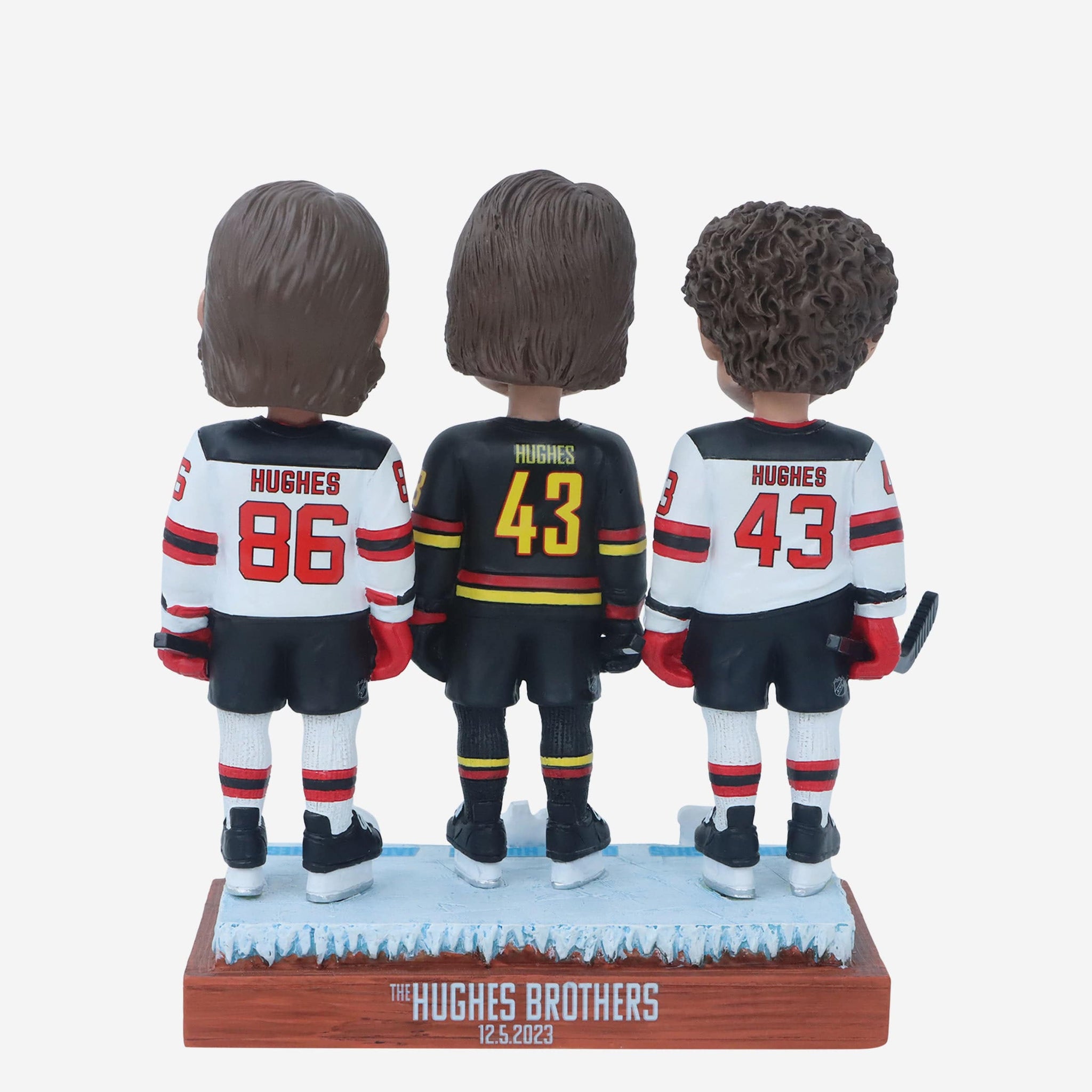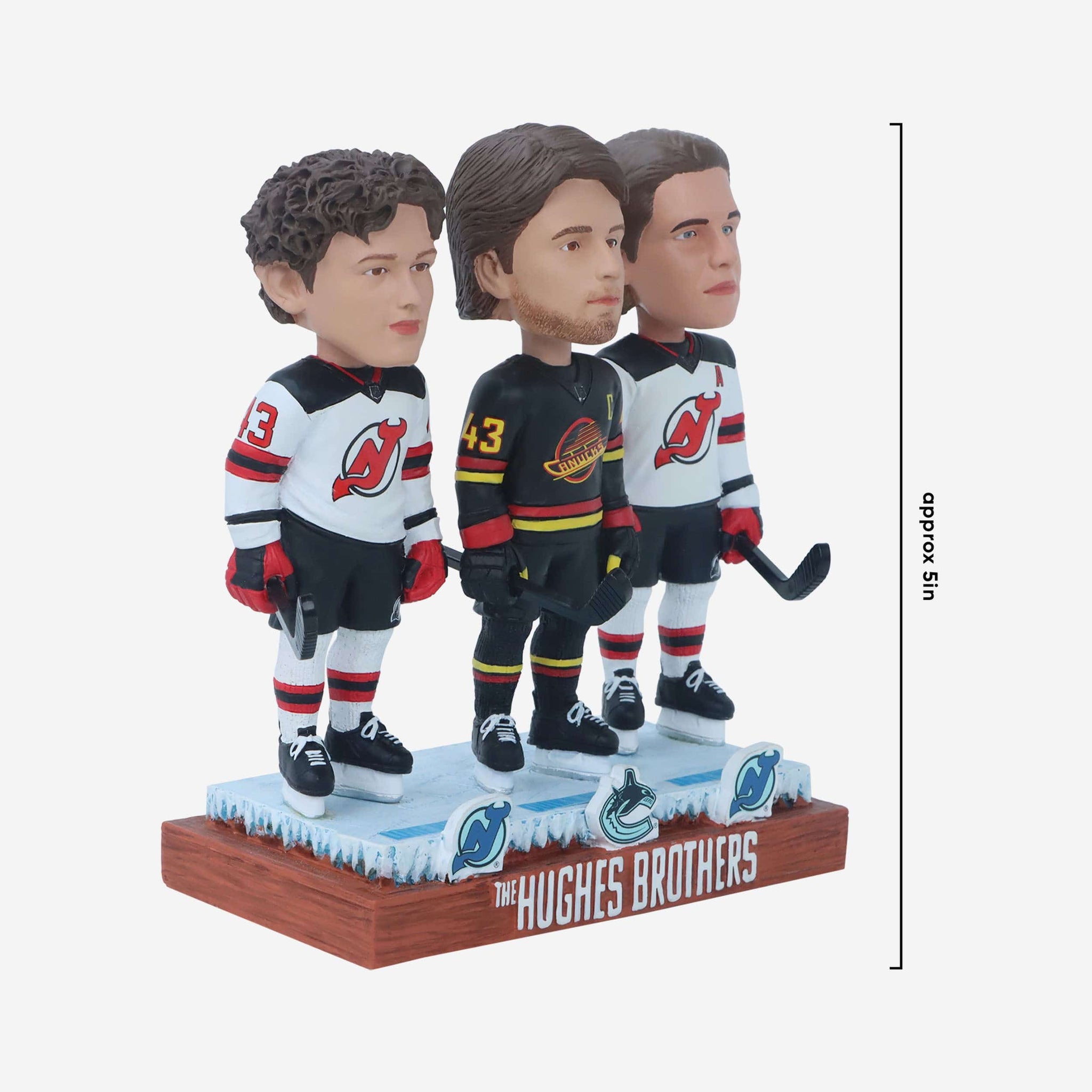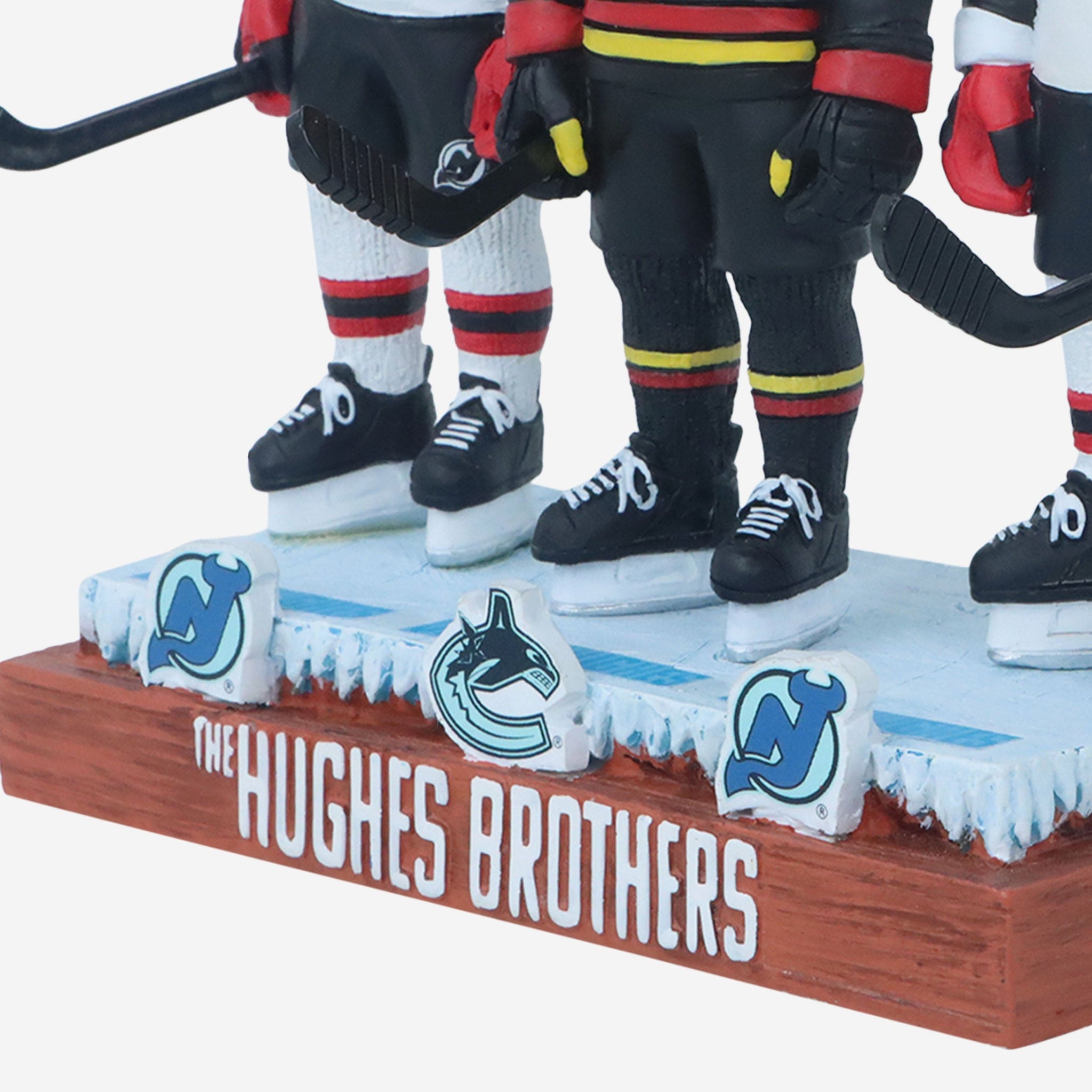 The day on the calendar matters not. With this Jack Hughes & Luke Hughes & Quinn Hughes New Jersey Devils & Vancouver Canucks Mini Bobblehead Scene in your collection, it'll always be Hughesday.