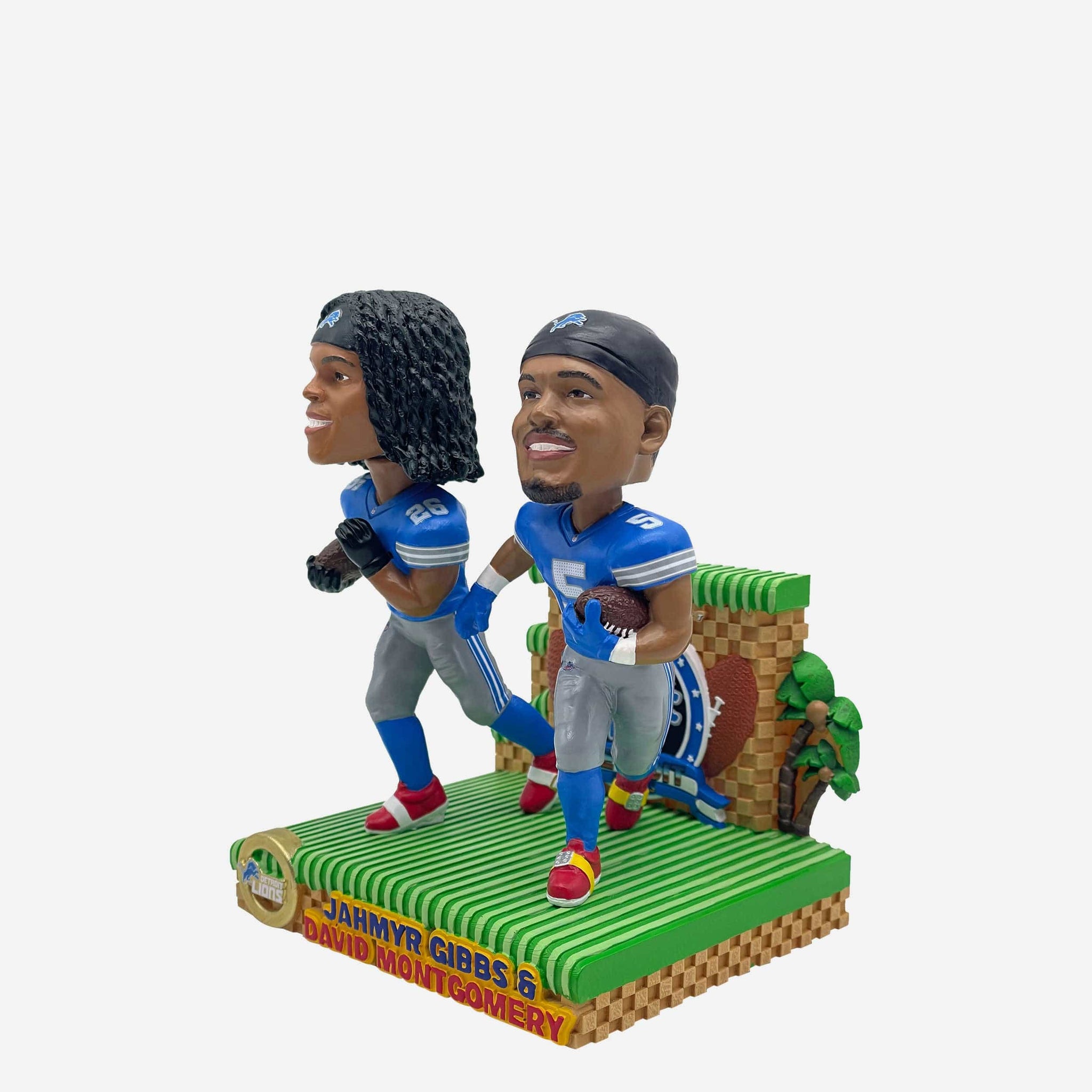 This duo is powering up and ready to clear the stage! It's safe to say the Jahmyr Gibbs & David Montgomery Detroit Lions Nickname Dual Bobblehead has a nice ring to it.