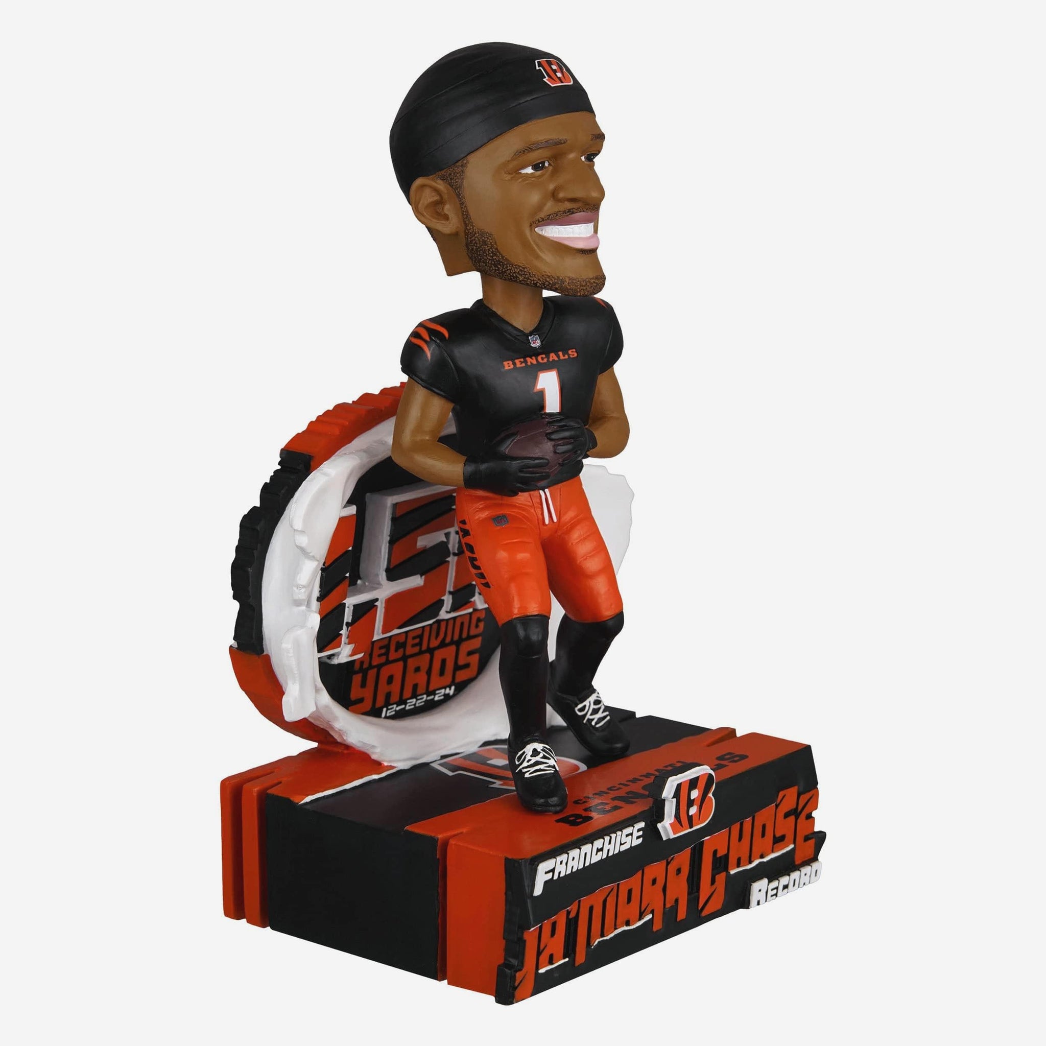 Ja'Marr was Chasing greatness...and he caught it! Put some franchise history in your fancave with the Ja'Marr Chase Cincinnati Bengals Franchise Receiving Record Bobblehead.
