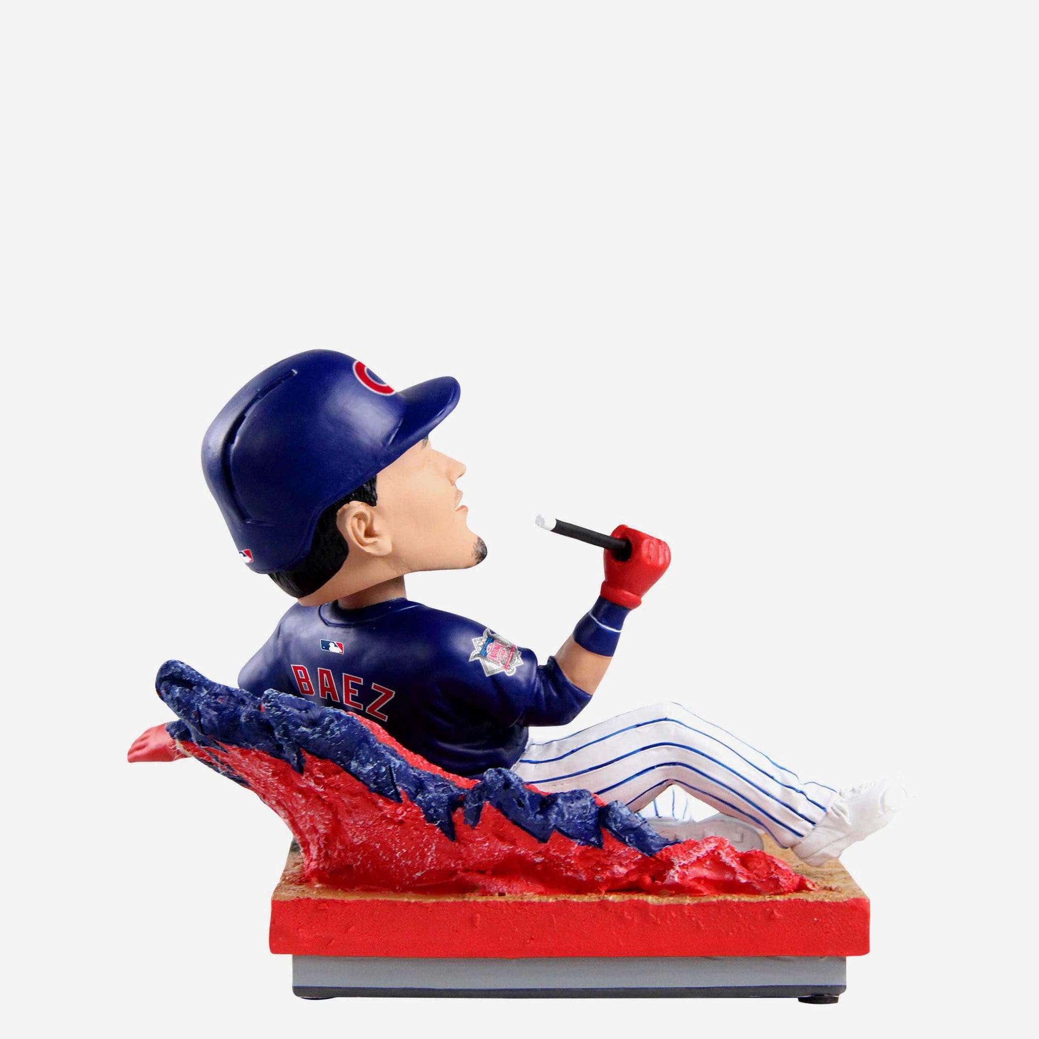 - Portrays Baez in a sliding action pose while wearing his gameday uniform and holding a magic wand and playing cards, ready to amaze the crowd