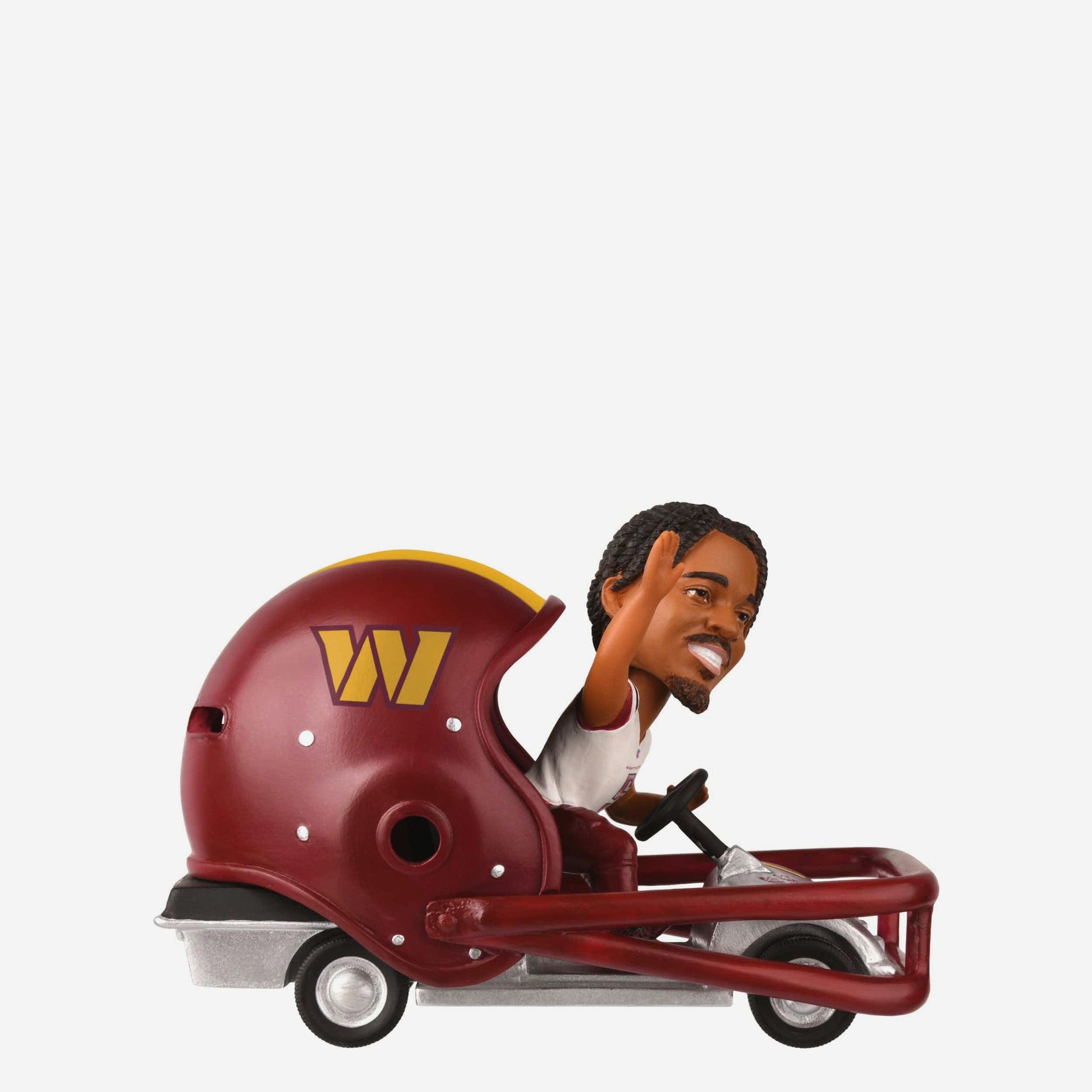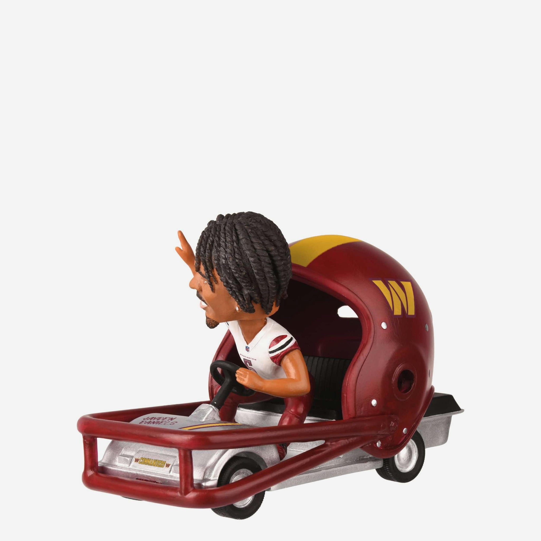 Ready, set, bobble! The Jayden Daniels Washington Commanders Helmet Cart Bobblehead is here to drive your fandom straight into the end zone.