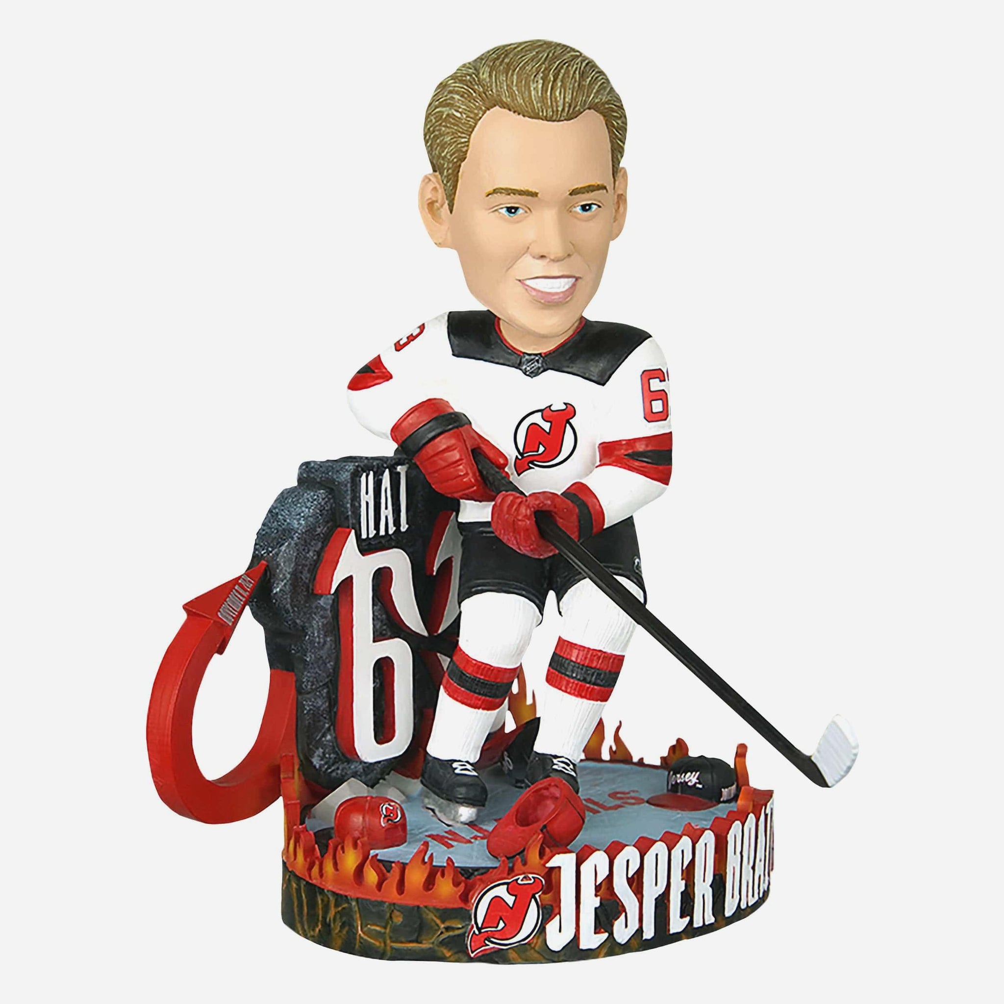 Tired: hat trick. Wired: Bratt trick! Securing this Jesper Bratt New Jersey Devils Hat Trick Bobblehead is as easy as 1, 2, 3 – goals that is.