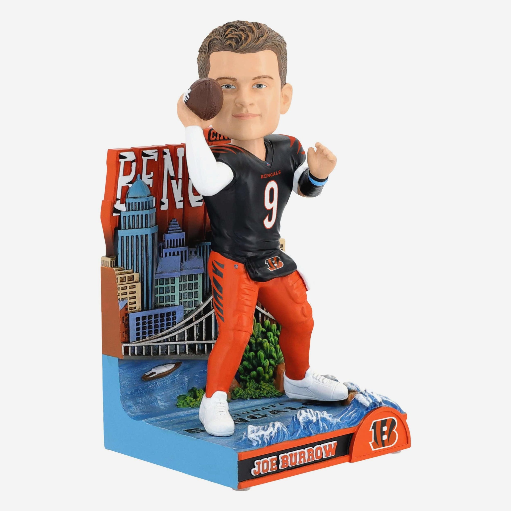 - Portrays Burrow wearing his black gameday uniform in an action pose, ready to show off his Queen City skills