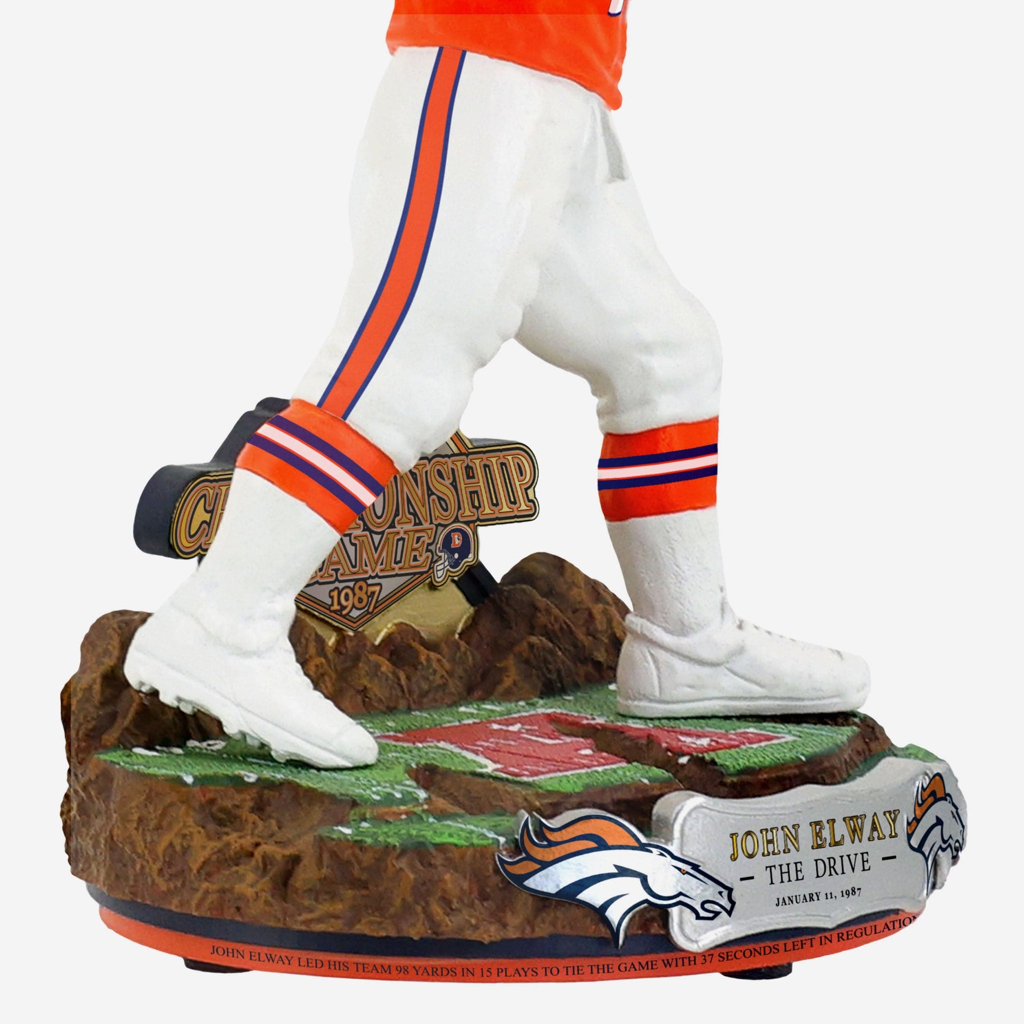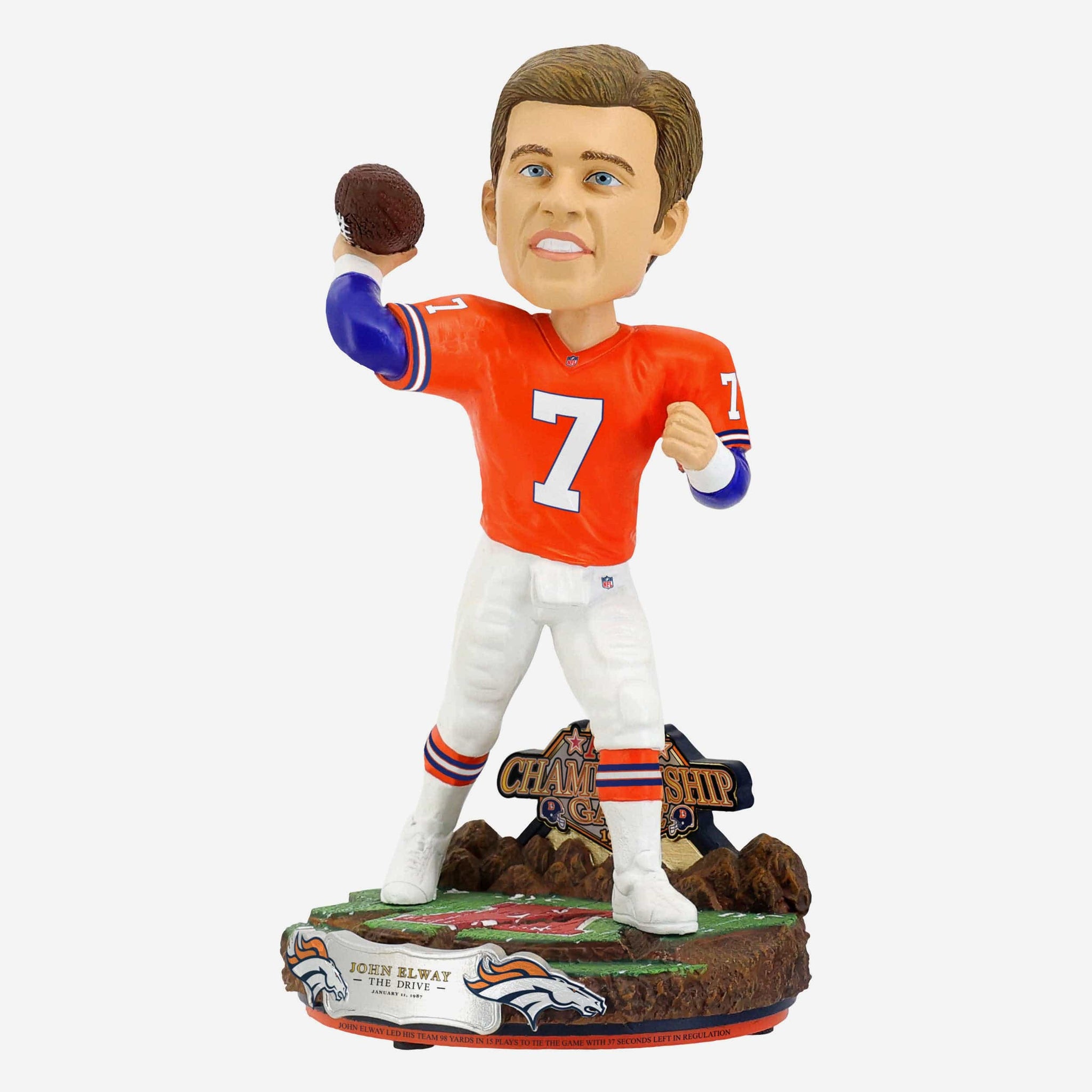 January 11, 1987: John Elway leads the Broncos 98 yards in 15 plays to tie the AFC Championship Game! Show off his clutch performance with this John Elway Denver Broncos The Drive Bobblehead.