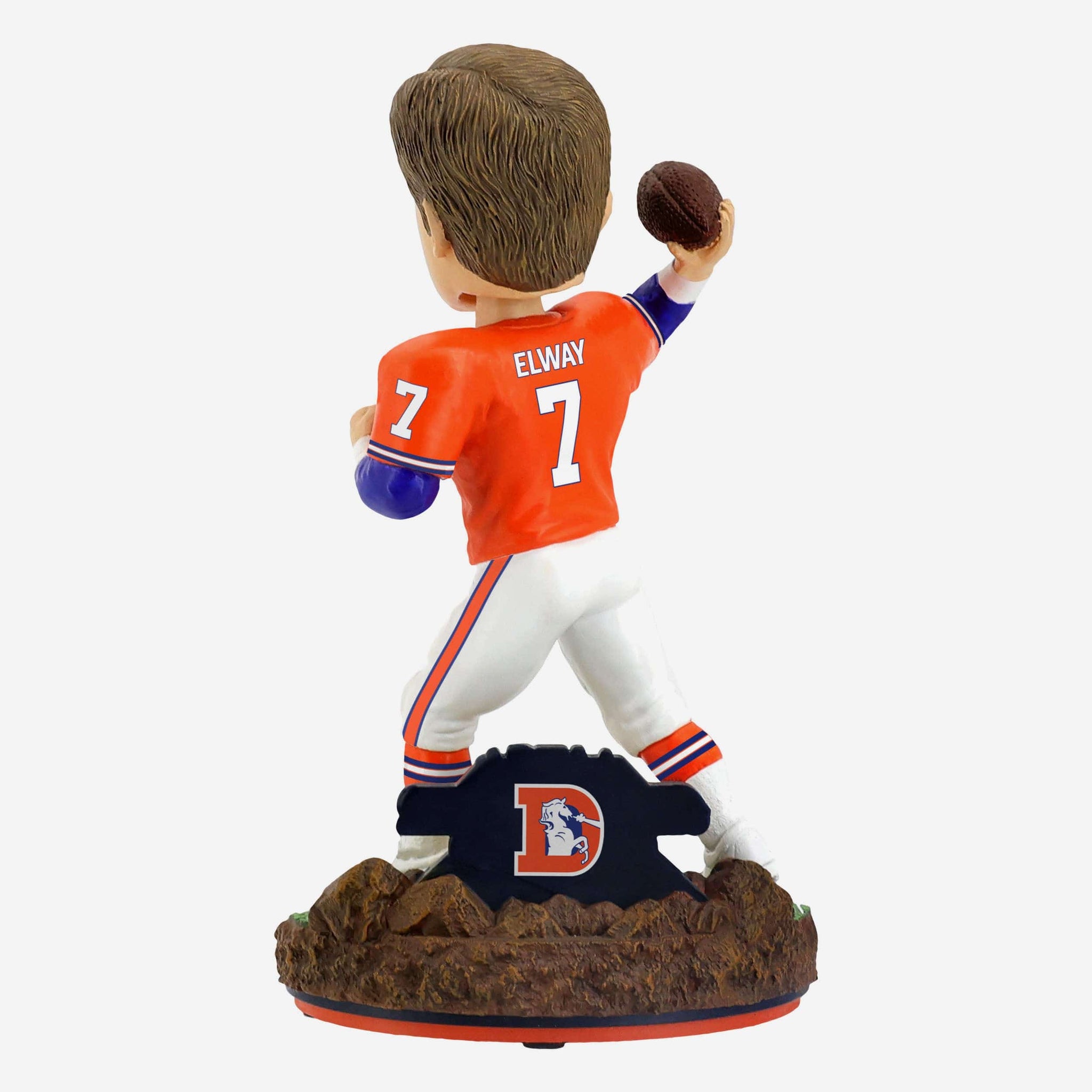 • Portrays Elway wearing his orange gameday uniform in an action pose, ready to make the play of the game