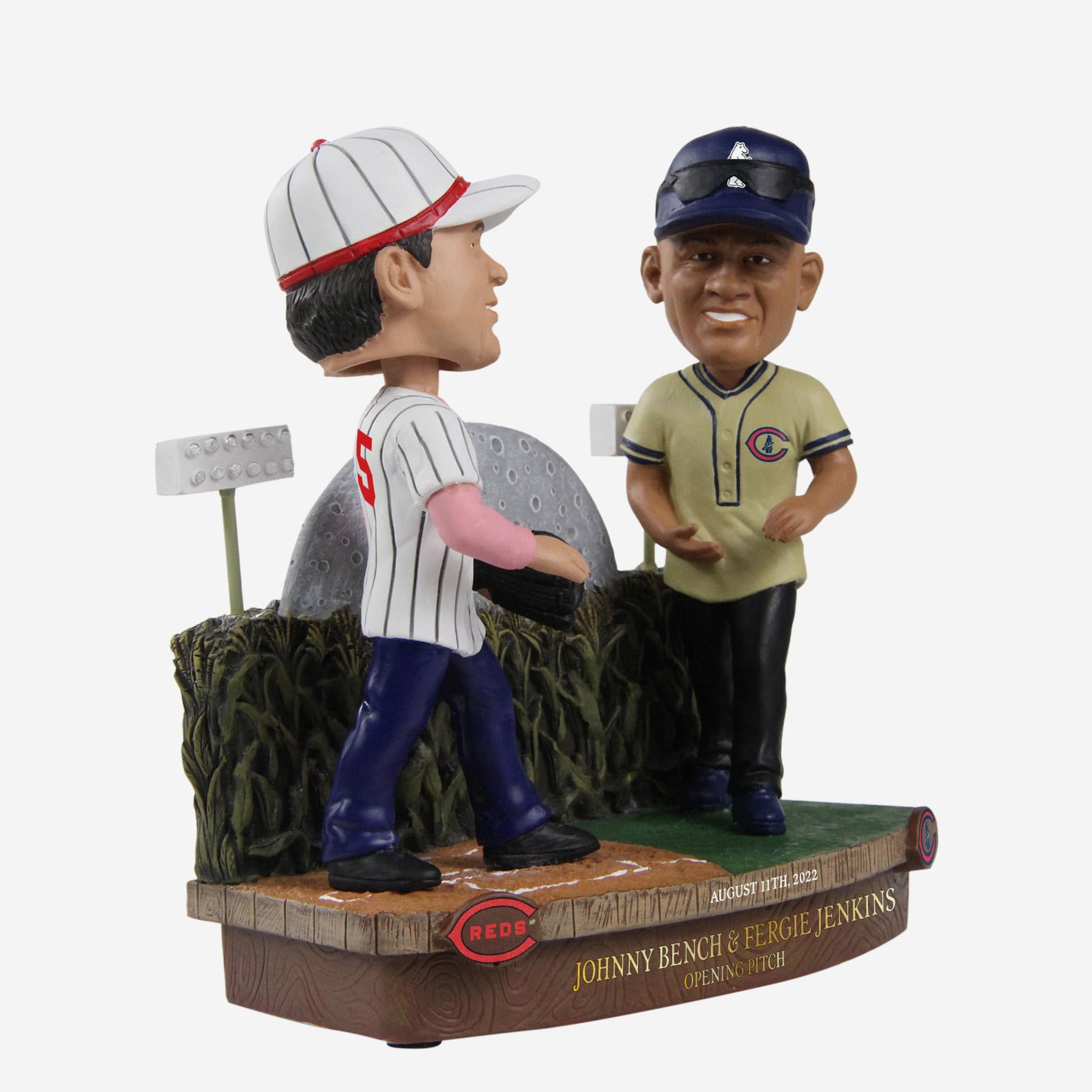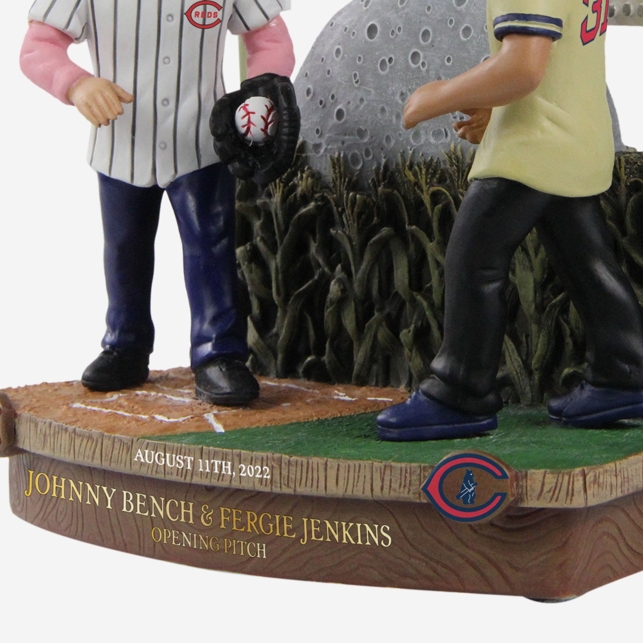 Stop us if you've heard this one before - A Cub and a Red are playing catch in a corn field. No, it's not the setup for a cheesy joke. It's a description of this Johnny Bench & Fergie Jenkins Cincinnati Reds & Chicago Cubs 2022 Dyersville Cornfield First Pitch Dual Bobblehead.