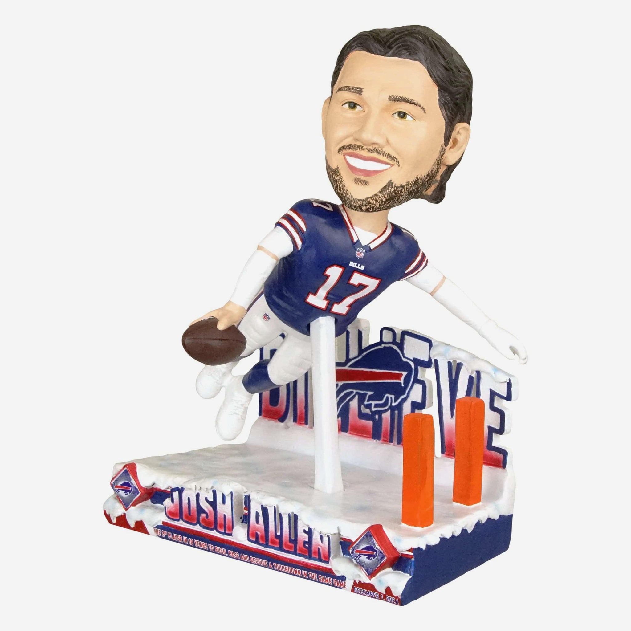 Passing TD. Rushing TD. Receiving TD. Cross them all off your list in one game with the Josh Allen Buffalo Bills Rushing & Receiving & Throwing Touchdown Milestone Bobblehead!