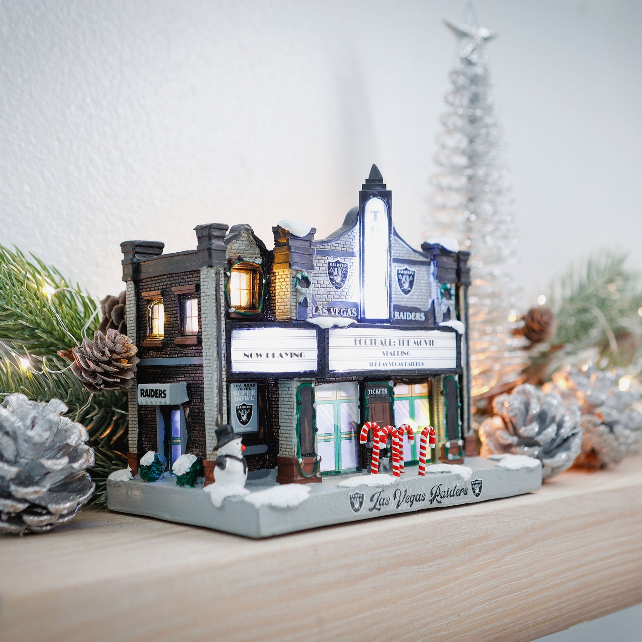 Get your popcorn ready and roll out the red carpet for this one. Bring some lights, camera, ACTION to your holiday decorations this season with the Las Vegas Raiders Light Up Resin Team Theater!