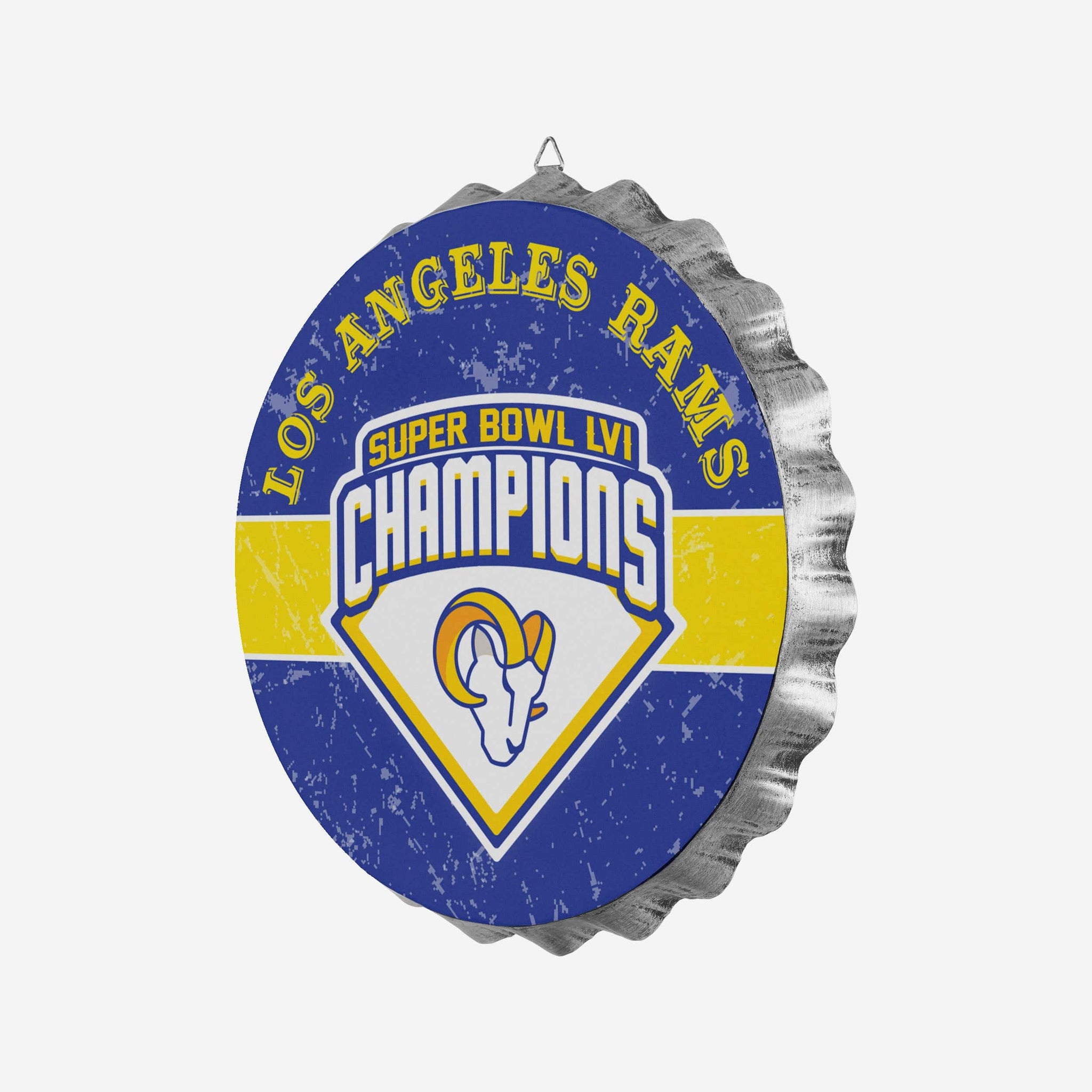 We know your fancave is your sanctuary. This Los Angeles Rams Super Bowl LVI Champions Metal Distressed Bottlecap Wall Sign is here to make sure you've got the most celebratory sanctuary around!