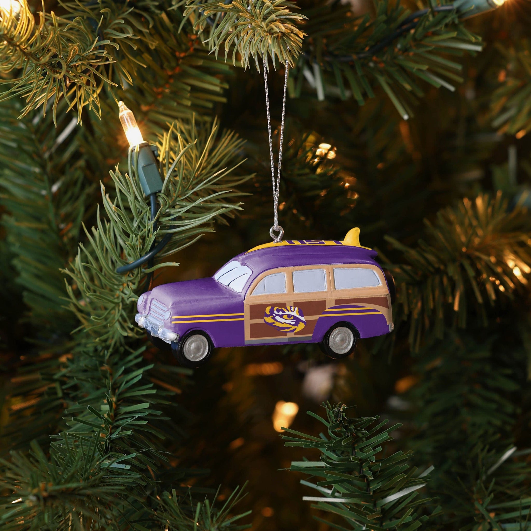 WARNING! Laying eyes on this LSU Tigers Station Wagon Ornament on your tree may result in an uncontrollable desire to embark on a road trip down the coast.