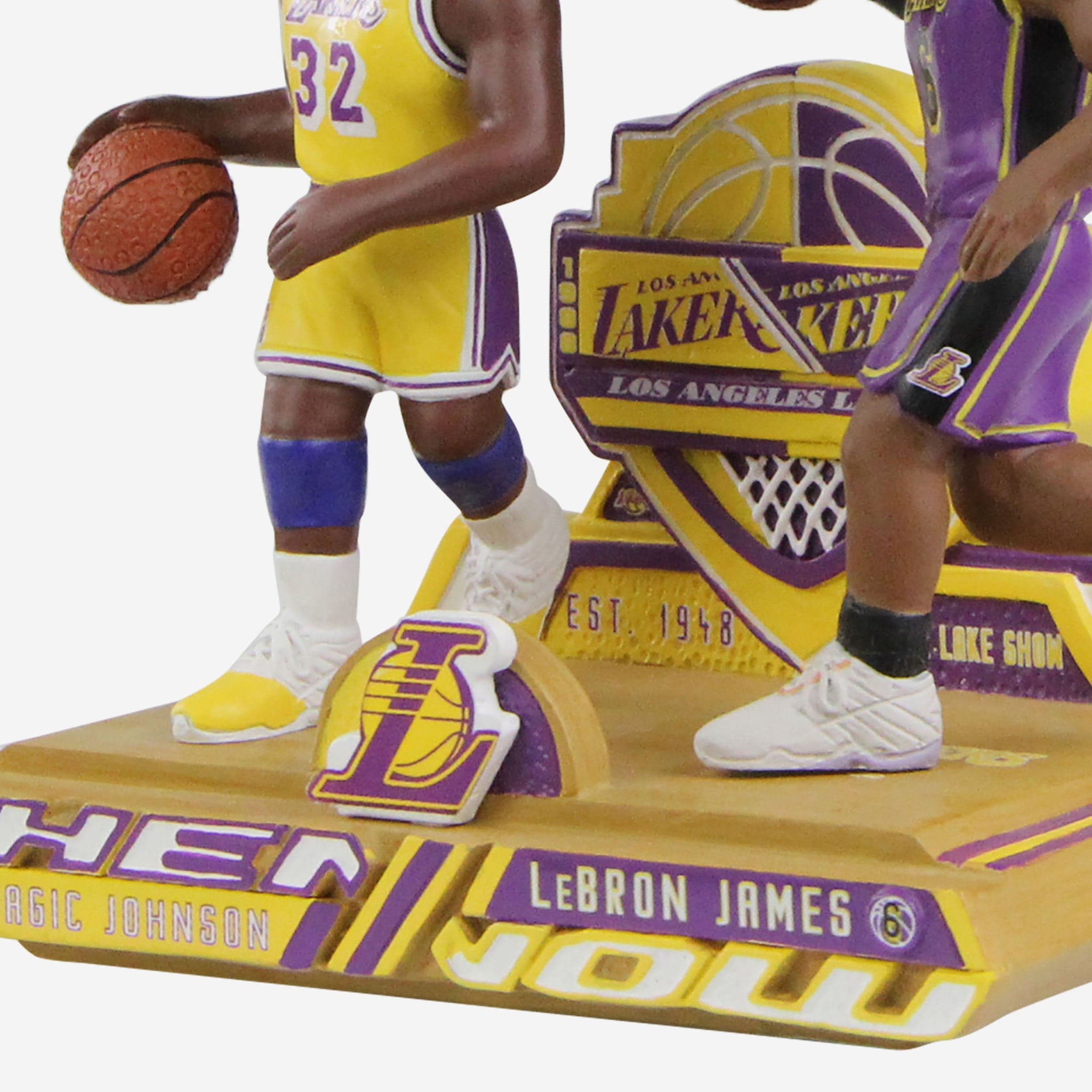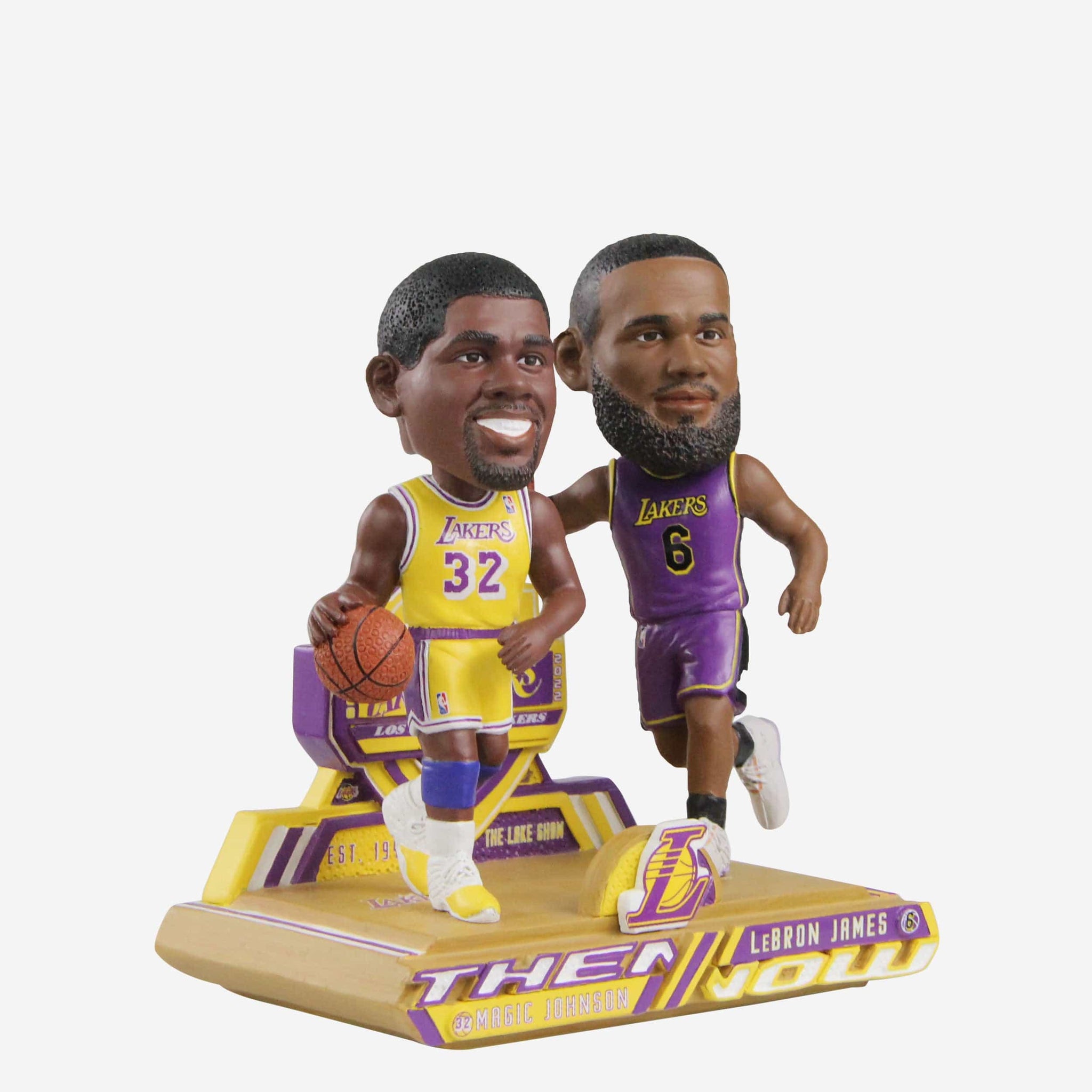 Past and present meet for a truly star-studded premiere worthy of the Hollywood spotlight. Bring together two of the game's greatest of all time with the Magic Johnson & LeBron James Los Angeles Lakers Then and Now Bobblehead.