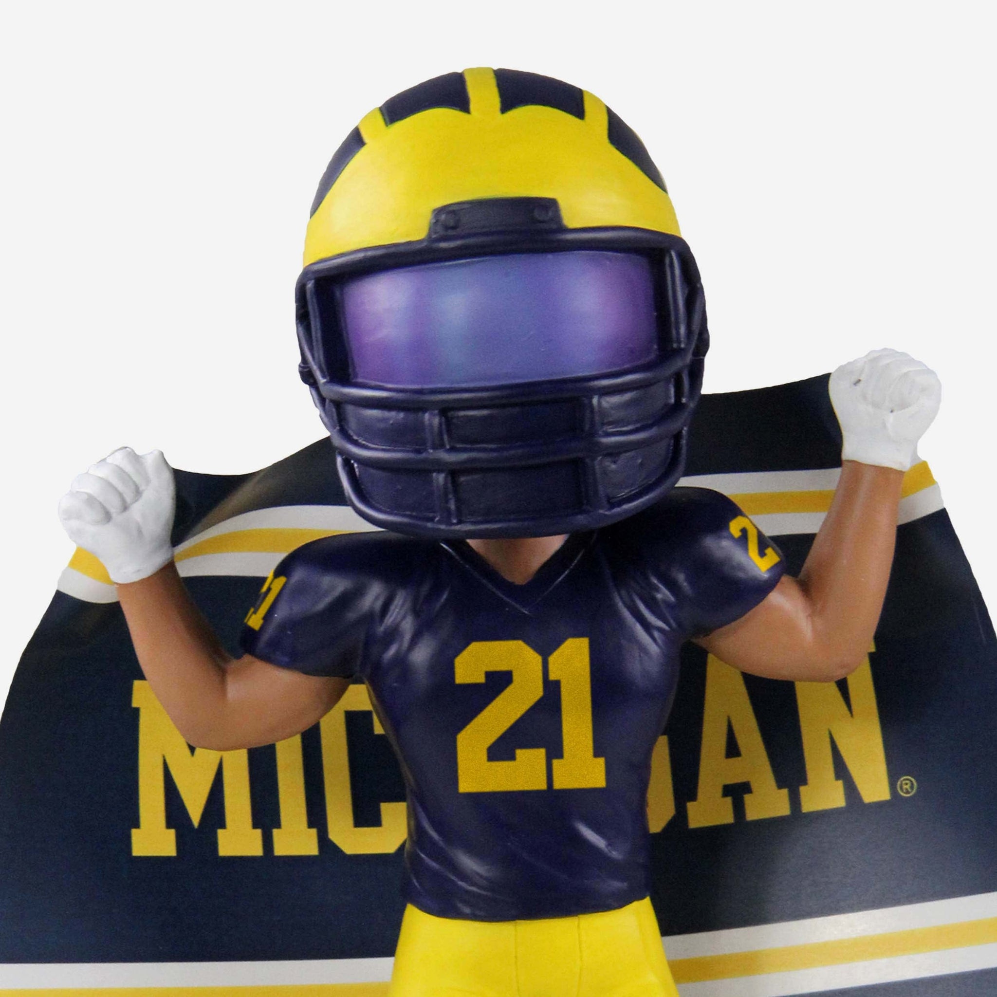 • Portrays Michigan Wolverines player in an action pose while wearing gameday uniform and holding team flag for a little extra dose of team spirit