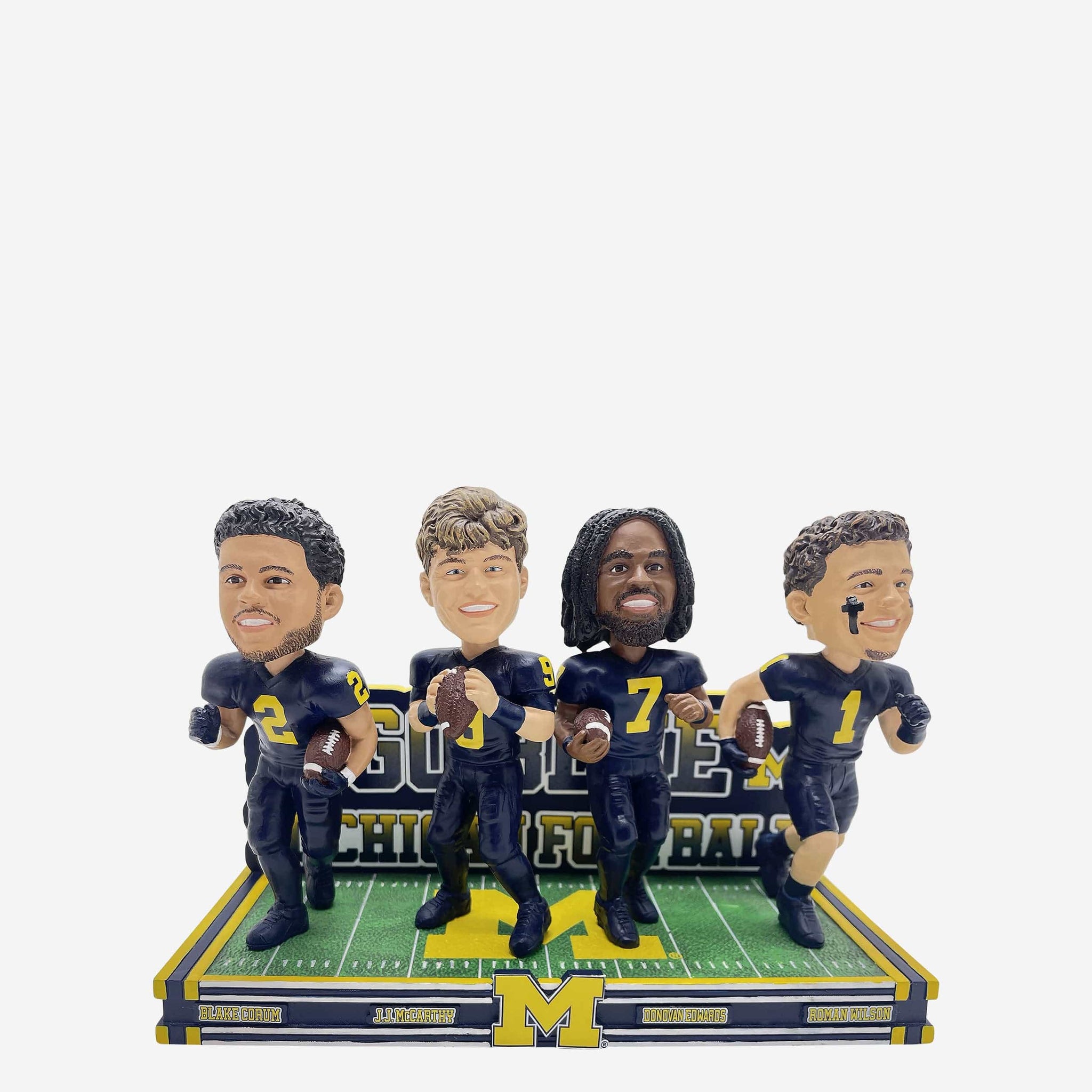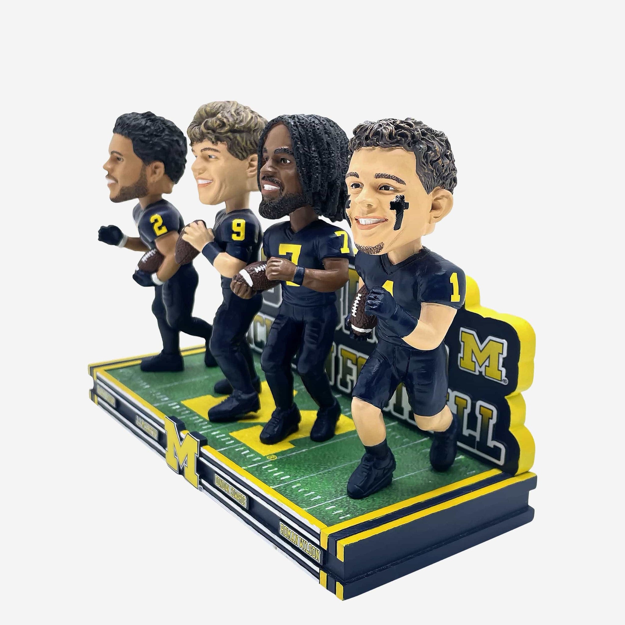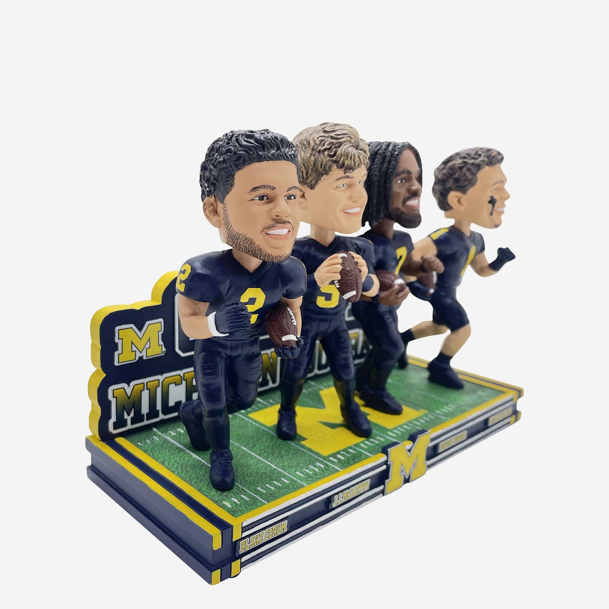 This quartet is giving your Wolverines roster a big upgrade! It’s game on all year round in your fancave with the Michigan Wolverines Go Blue Mini Bobblehead Scene, featuring Blake Corum, J.J. McCarthy, Donovan Edwards, and Roman Wilson!
