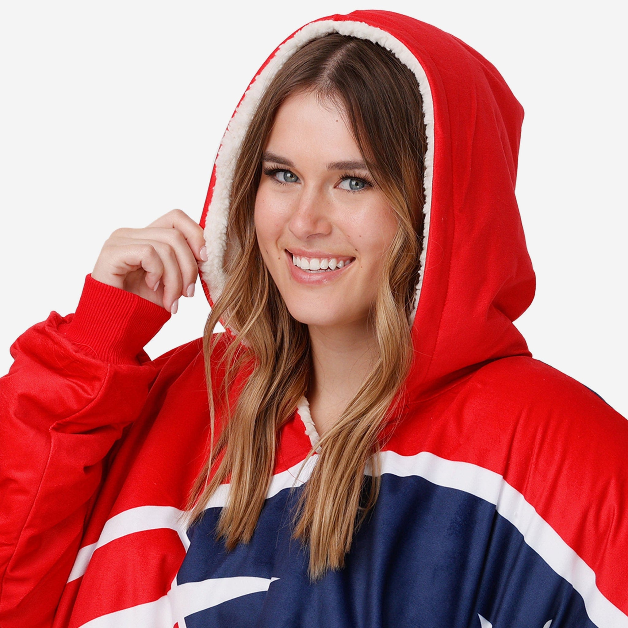 Never before has fandom looked so good and felt so relaxing. Lounge like a legend while you cheer your team on to victory by rocking this New England Patriots Reversible Colorblock Hoodeez.