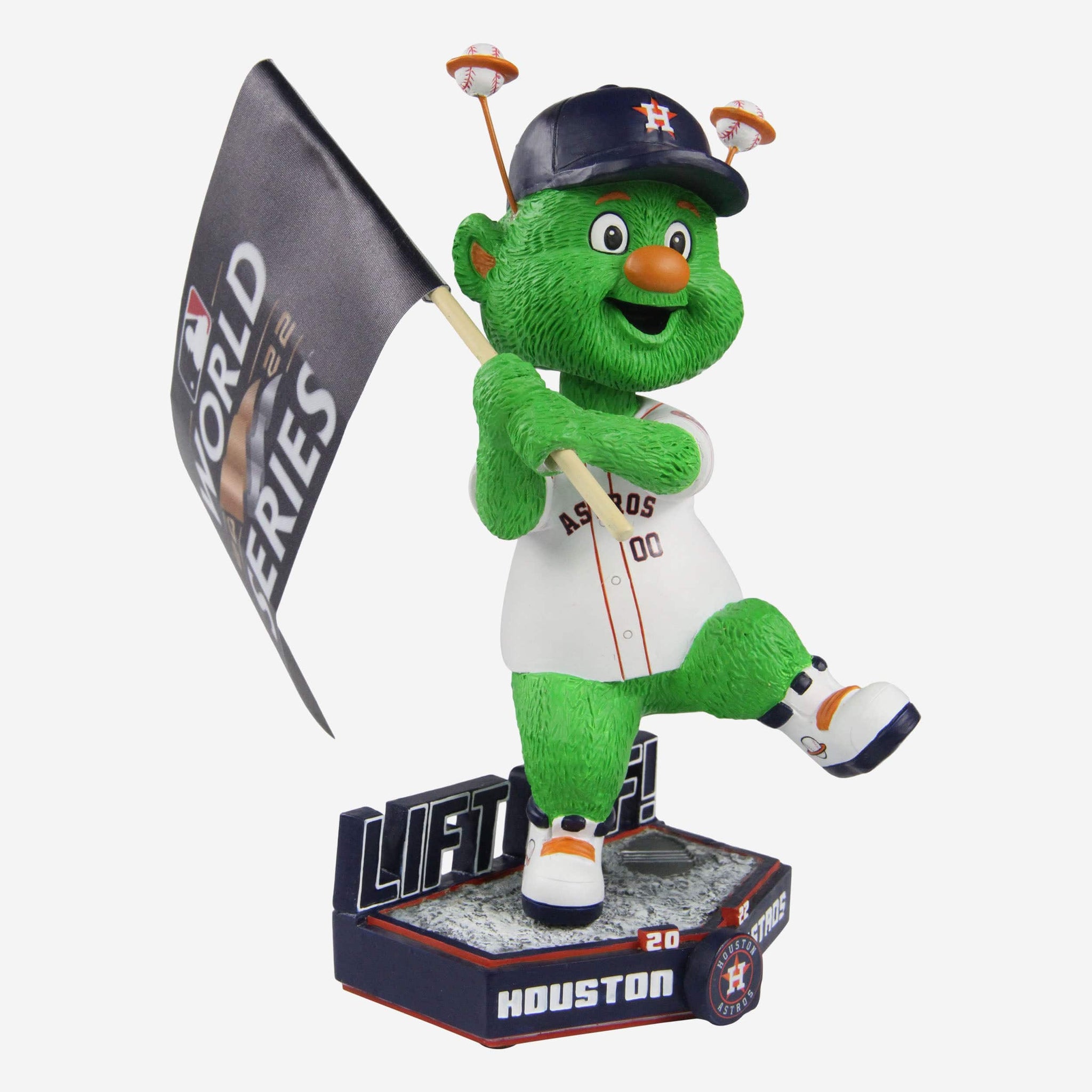 The Astros shot for the moon, and they landed in the World Series! Secure the pennant and celebrate this epic season with the Orbit Houston Astros 2022 American League Champions Mascot Bobblehead!