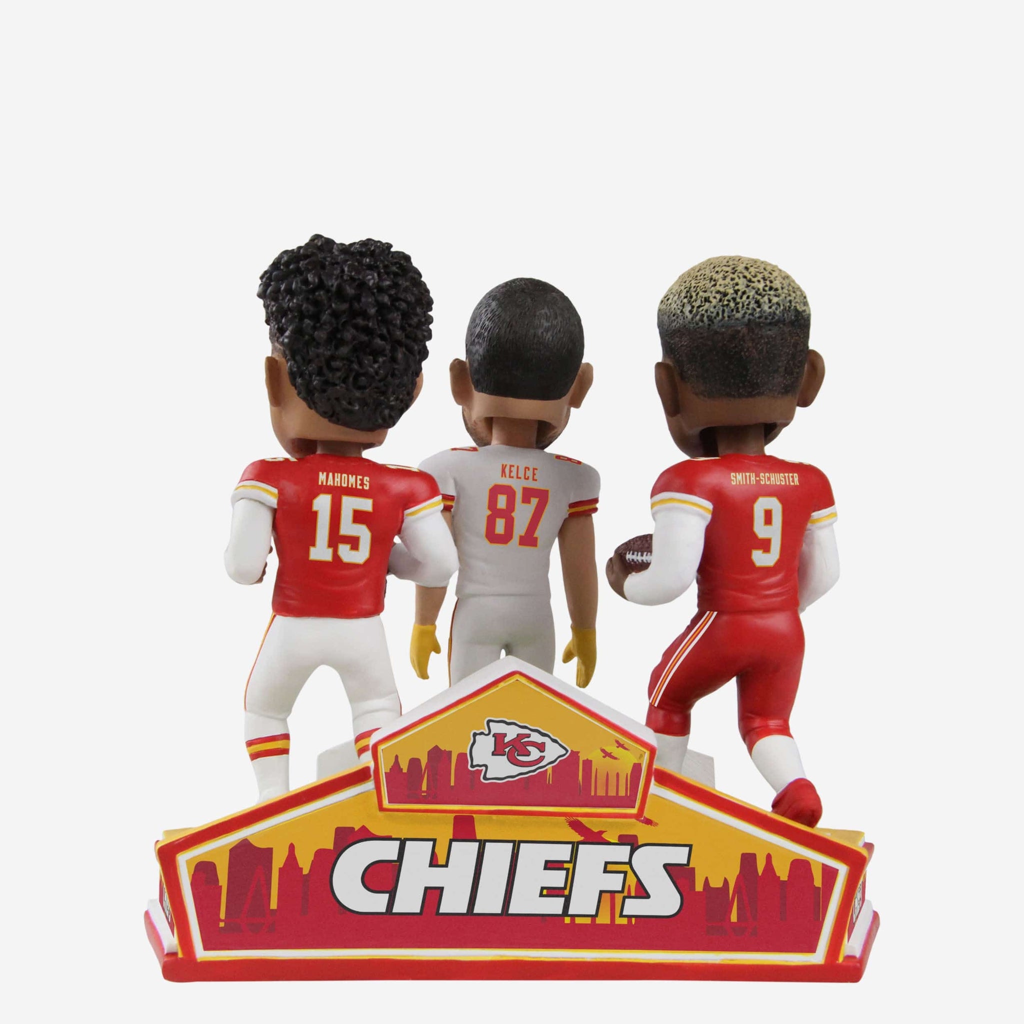 Whether you're making Mahomes magic, catching a TD with Travis, or just trying to bring some good JuJu to your collection, the Patrick Mahomes & Travis Kelce & JuJu Smith-Schuster Kansas City Chiefs Triple Bobblehead has you covered.