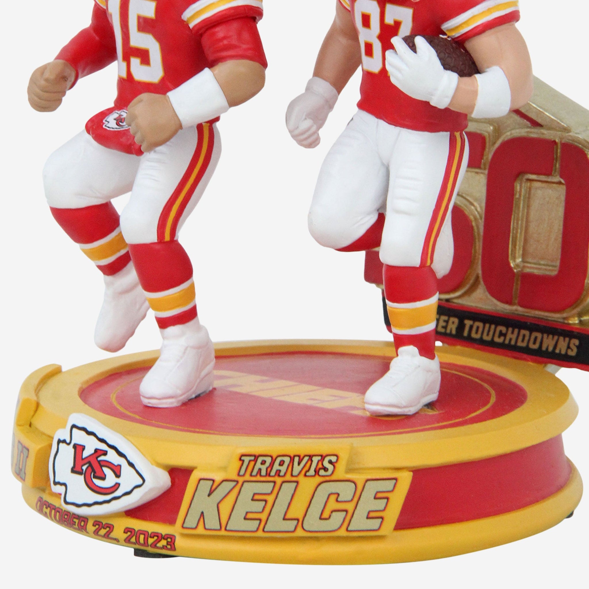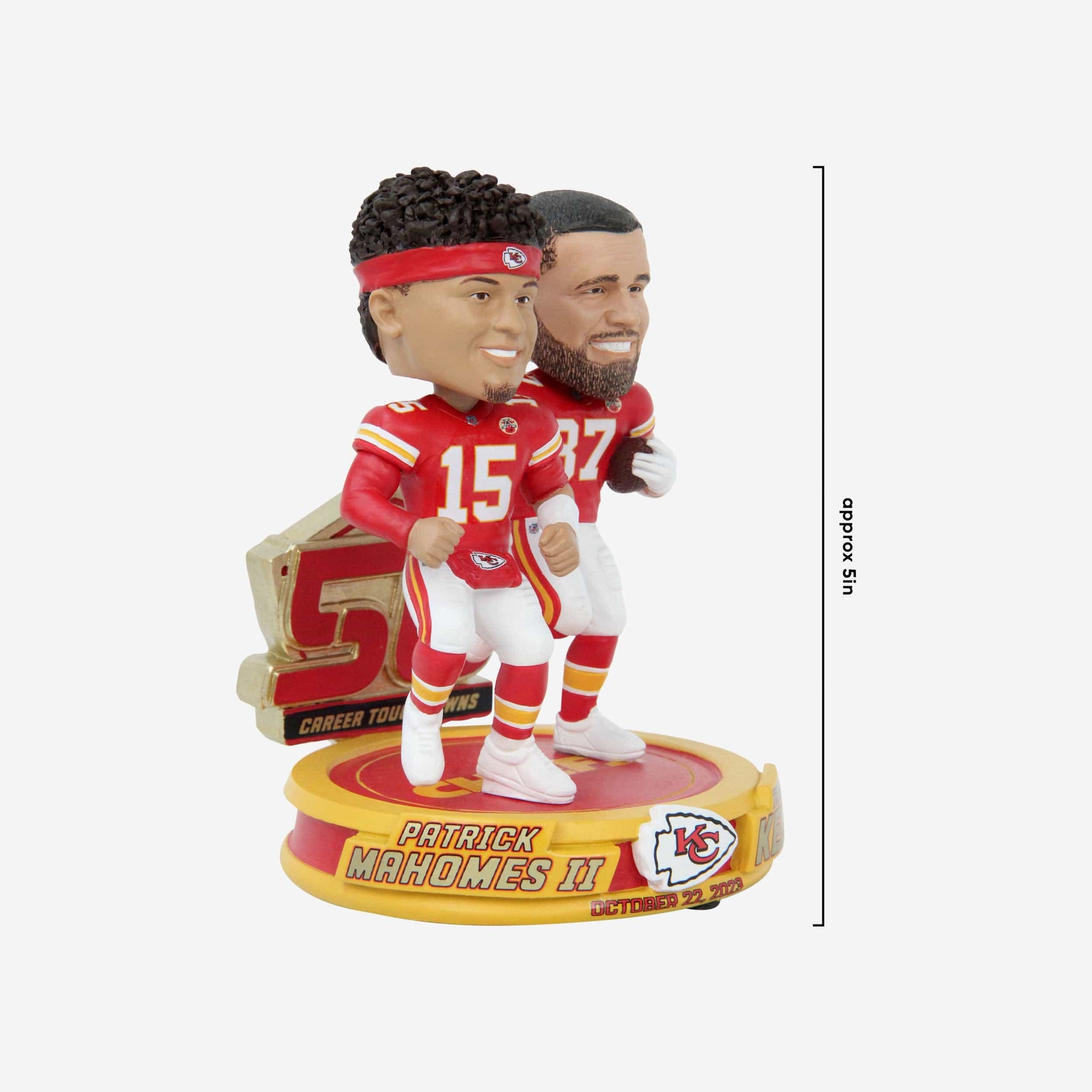 Peanut butter and jelly. Cookies and milk. Mahomes and Kelce. Some things are just better together. Bring one of football's most reliable connections to your collection with the Patrick Mahomes & Travis Kelce Kansas City Chiefs 50th Touchdown Connection Dual Bobblehead.