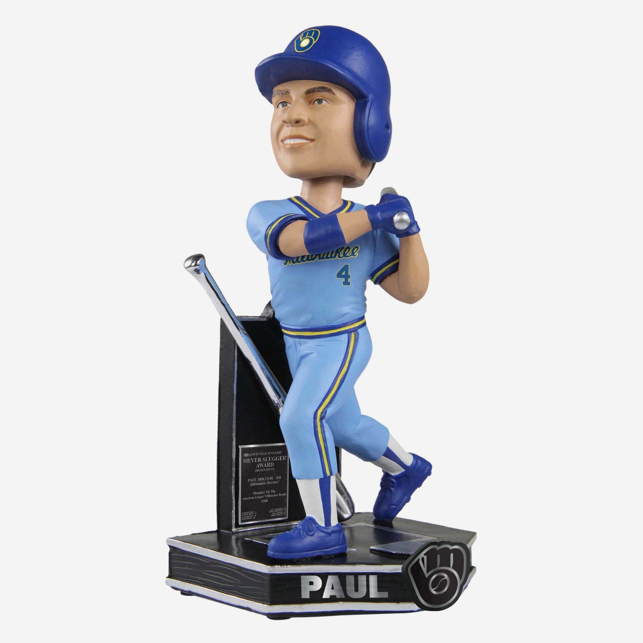 This Brewers legend is decked out in powder blue and swinging some silver. The Ignitor is here to light up your collection in the form of this Paul Molitor Milwaukee Brewers 1988 Silver Slugger Bobblehead.