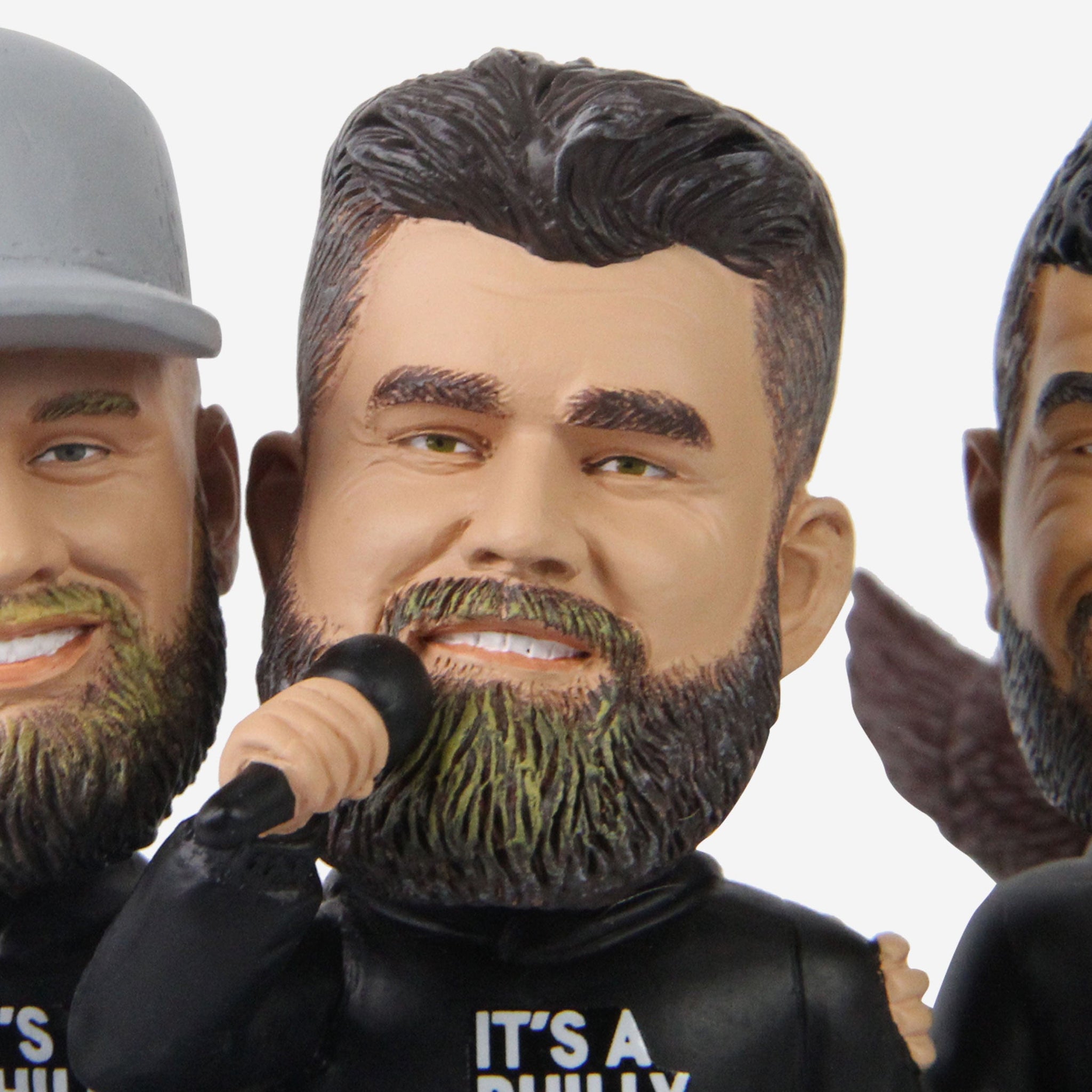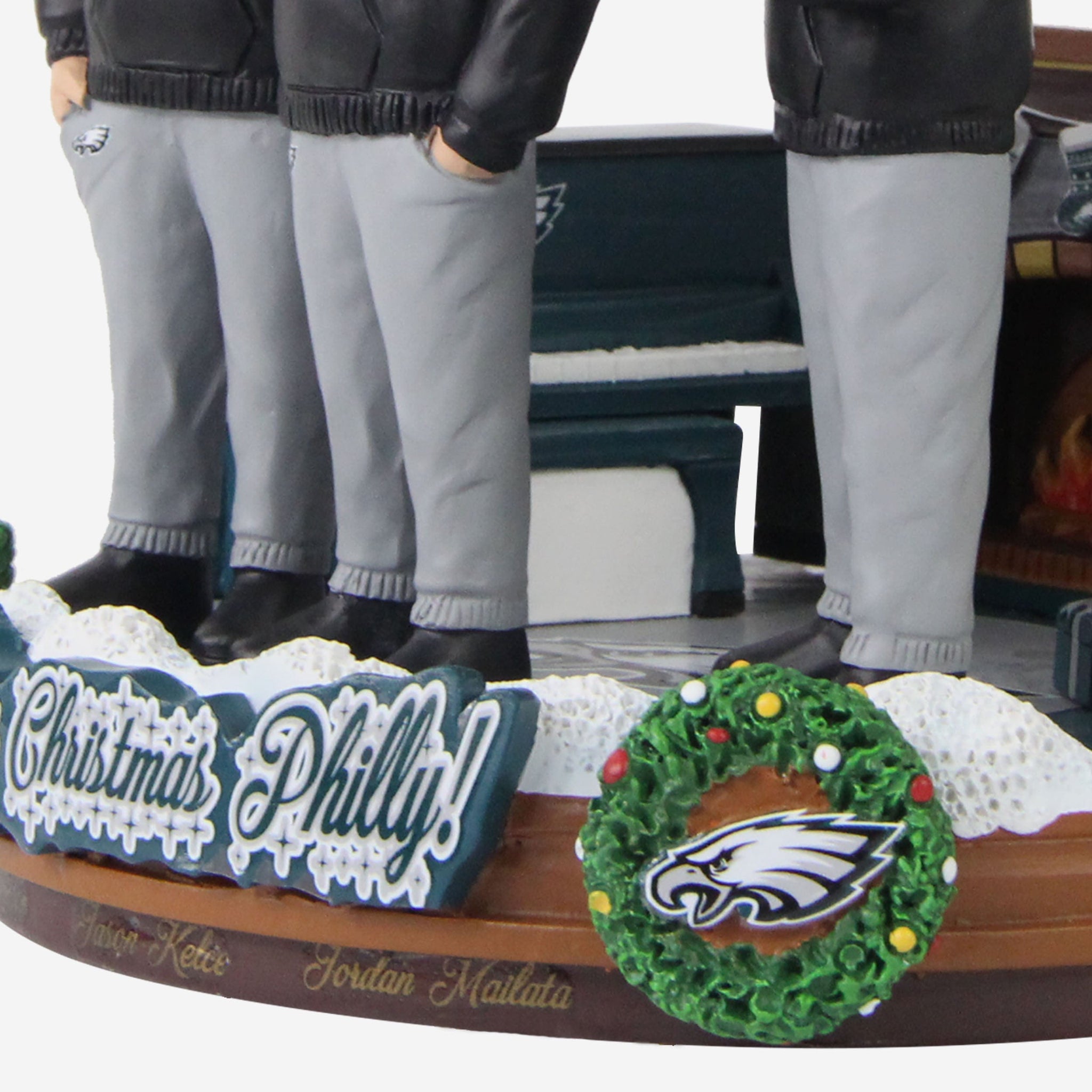 Have a holly, jolly BIRDSmas. Jason Kelce, Lane Johnson, and Jordan Mailata are bringing their dulcet tunes to your collection with the Philadelphia Eagles Merry Christmas Philly Mini Bobblehead Scene.