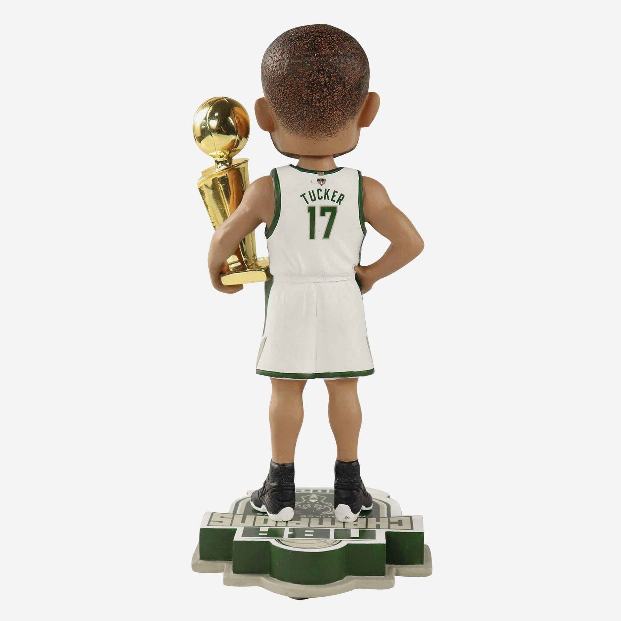 Bobble like a champ by bobbling WITH a champ! Party on with this P.J. Tucker Milwaukee Bucks 2021 NBA Champions Bobblehead!