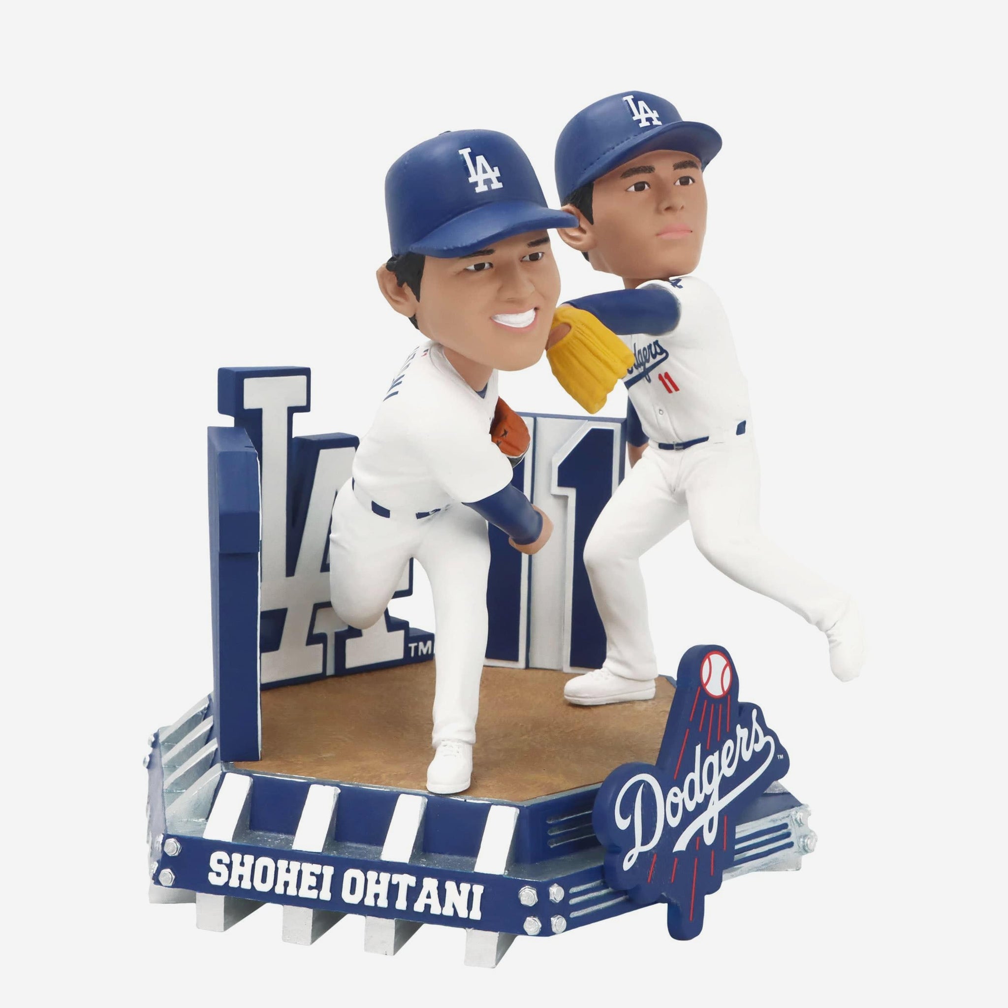 Your rotation is in for a double dose of pitching prowess! Get ready to upgrade your stable of arms with this Roki Sasaki & Shohei Ohtani Los Angeles Dodgers Pitching Dual Bobblehead.