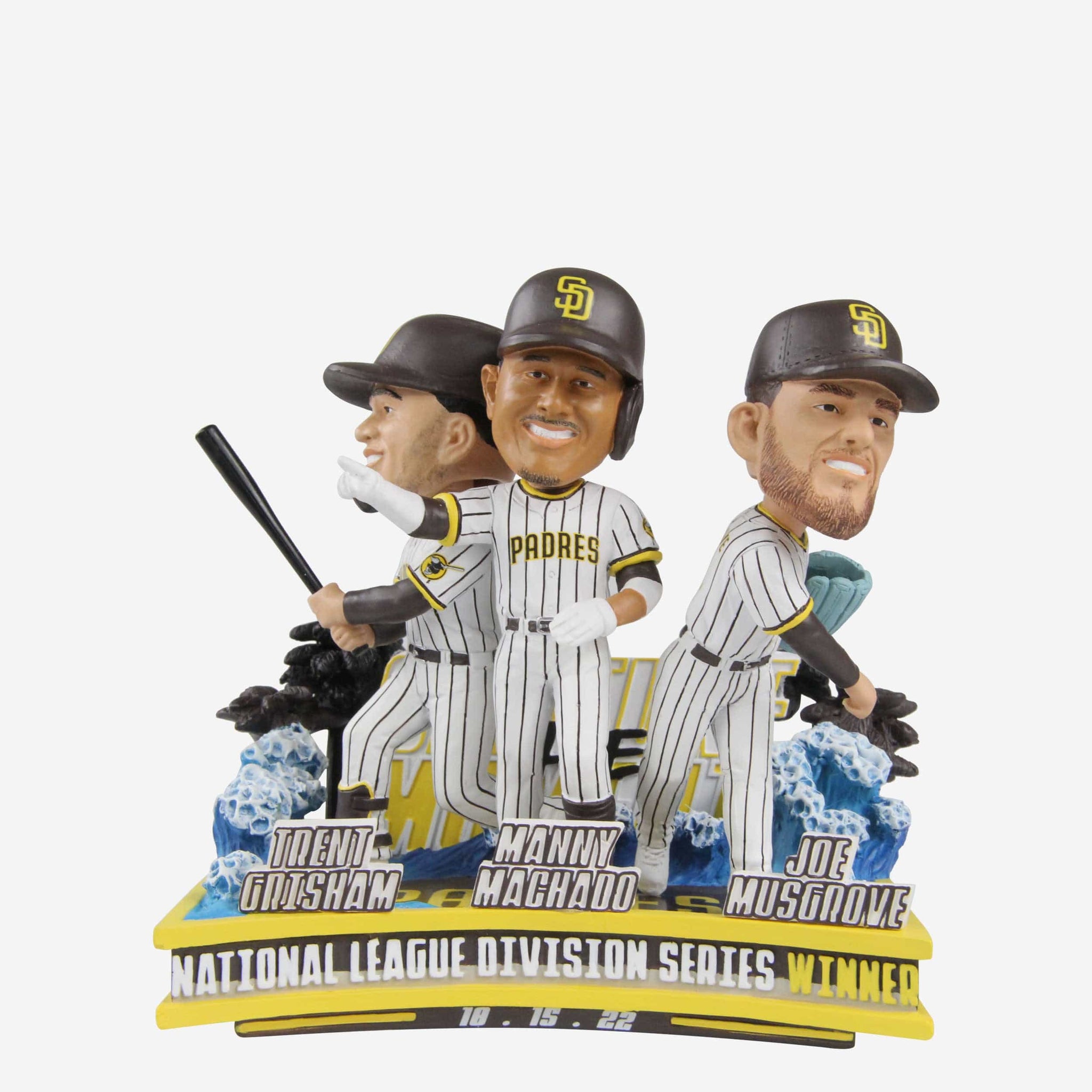 The only thing more beautiful than the San Diego weather is an NLCS berth. Manny Machado, Trent Grisham, and Joe Musgrove are here to make sure the sun is always shining on your collection with this San Diego Padres 2022 NLDS Winners Mini Bobblehead Scene.